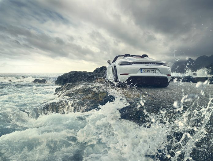 Já o 718 Spyder assume-se como uma máquina para prazer de condução a céu aberto, munido de uma capota ligeira (pode ser utilizada todos os dias e pode ser guardada sob a tampa) que pode lidar com a velocidade máxima. Continua a história de sucesso de roadsters famosos como o Porsche 550 Spyder e o 718 RS 60 Spyder. Ao contrário do GT4, o 718 Spyder tem um spoiler traseiro que se eleva automaticamente a partir dos 120 km/h. Graças ao difusor funcional, é o primeiro modelo na família Boxster a gerar força descendente no eixo traseiro.