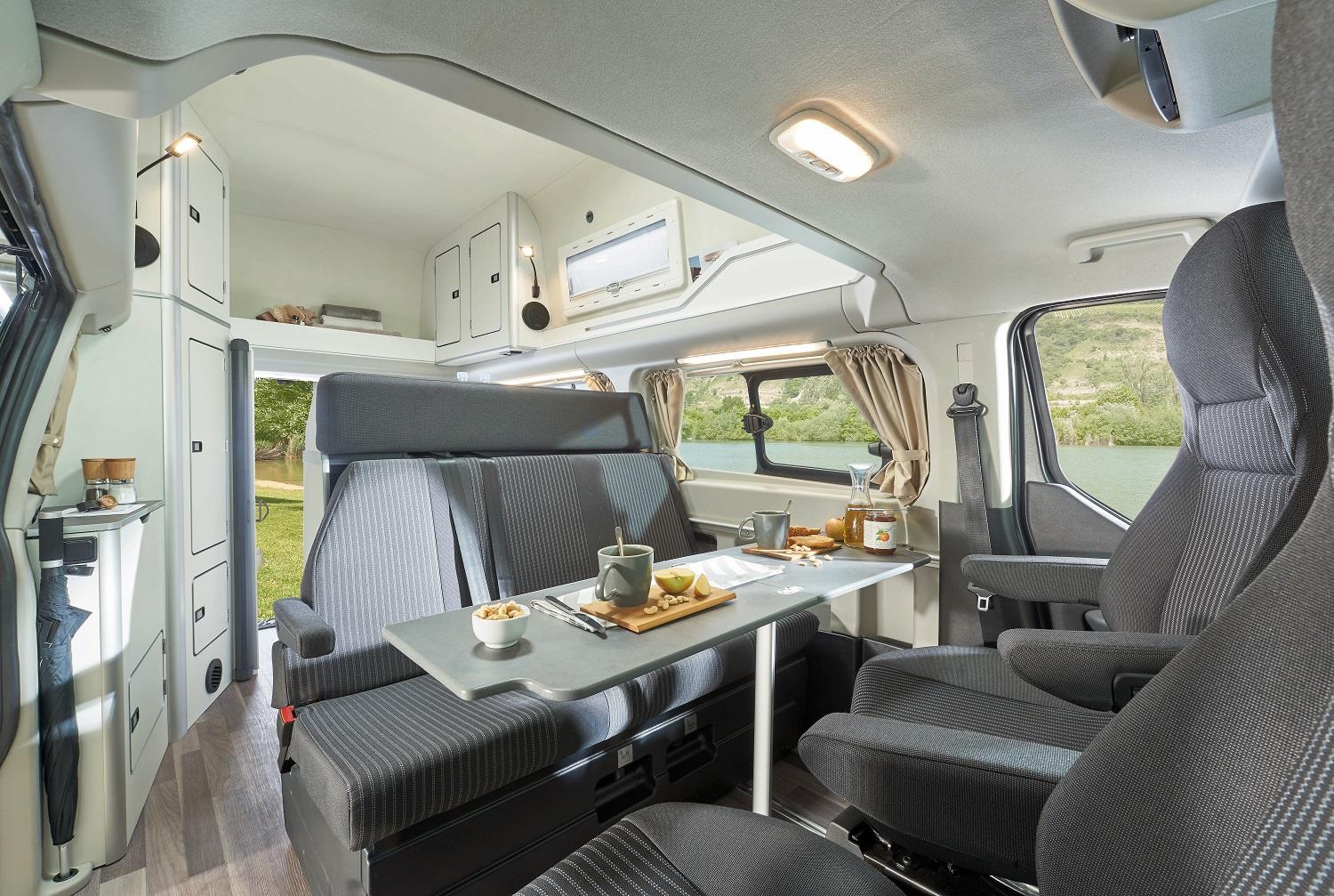 Tanto na versão normal como na versão longa Nugget Plus (que oferece 36,7 centímetros de espaço adicional), há espaço de sobra para todo o equipamento que normalmente se encontrar numa autocaravana. A lista inclui um fogão a gás com dois bicos, um frigorífico com 40 litros de capacidade e tanques de água potável e residual de 42 litros cada, que também podem ser ligados a um chuveiro montado na traseira da autocaravana. Para o condutor, a Nugget pode ser equipada com o motor 2.0 TDCi de 130 ou 170 cv, e inclui o sistema de info-entretenimento Sync 3 com ecrã tátil de oito polegadas e comandos vocais. Também estão disponíveis vários sistemas de segurança de apoio à condução.