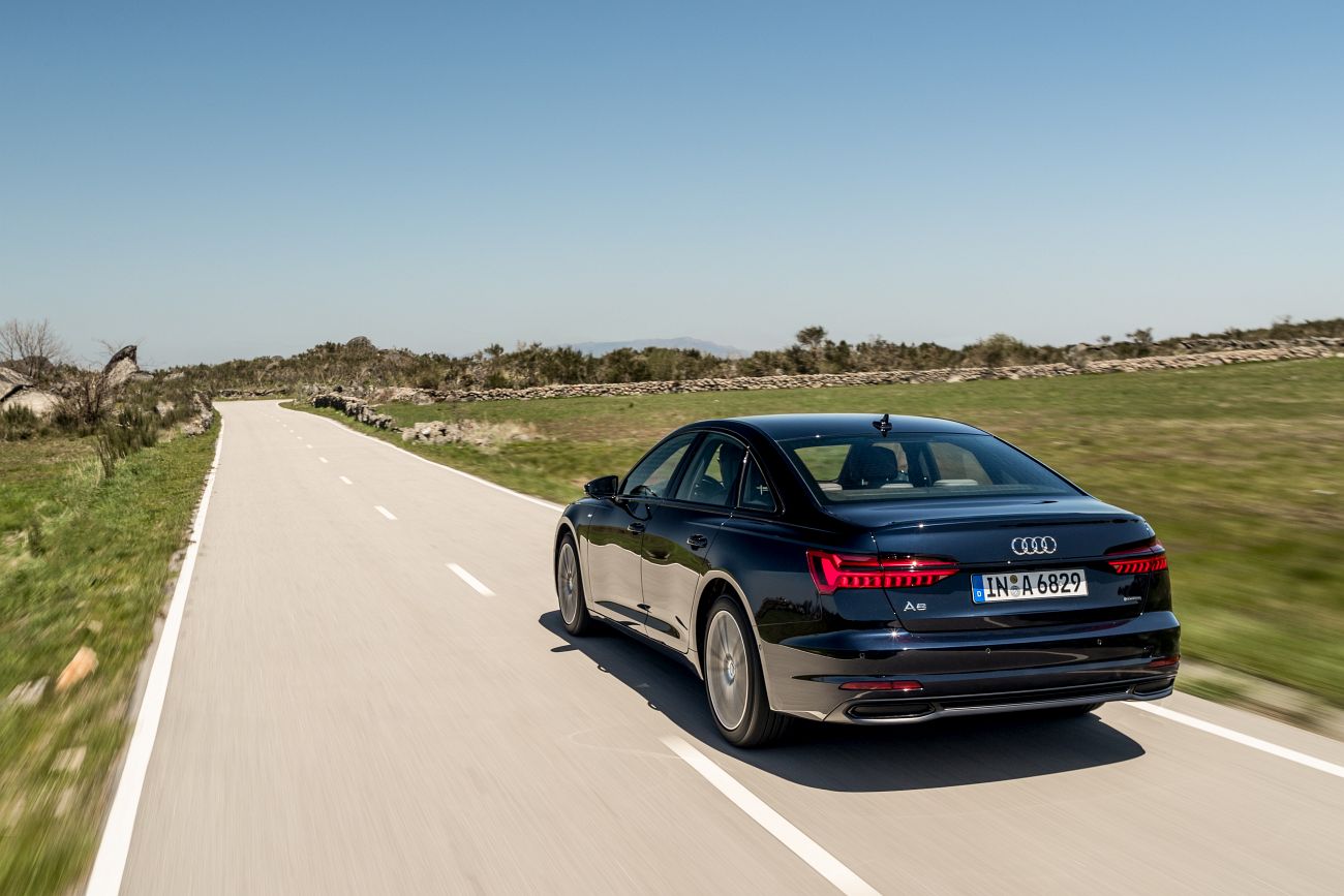 Todos os motores deste A6 são eletrificados e recorrem à tecnologia mild-hybrid (MHEV). Não, não é possível conduzir em modo elétrico. O que esta tecnologia garante é redução de consumo enquanto ajuda na ignição mais rápida e suave do motor após este ter sido desligado pelo sistema start/stop. Nos motores de seis cilindros é usado um sistema elétrico principal de 48 volts que tem a sua própria bateria de iões de lítio. No de quatro cilindros a conexão é feita a uma rede convencional de 12 volts. Os dois incluem o BAS, um alternador com motor de arranque, que trabalha juntamente com a bateria de iões, funcionalidade que entra em ação a partir dos 55 até aos 160 km/h. Isto permite que, aproveitando a inércia, o automóvel circule com o funcionamento do motor suspenso.