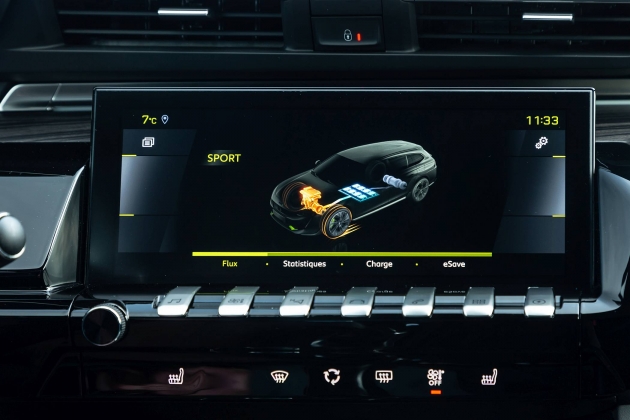 O modo ‘Electric’ é, como o próprio nome indica, apto para percursos sem gasto de combustível, com uma autonomia de 46 quilómetros (WLTP), atuando até aos 140 km/h, tendo no lado diametralmente oposto o modo ‘Sport’, que otimiza os 360 CV para respostas mais rápidas. Este modo atua sobre a direção, o amortecimento, o mapeamento do pedal do acelerador e a sonoridade digital do motor. O motor térmico garante a carga de bateria para que a potência máxima esteja sempre disponível. Pelo meio, há ainda os modos ‘Comfort’, ‘Hybrid’ (que seleciona automaticamente o tipo de motorização a utilizar consoante o topo de condução) e ‘4WD’ (para máxima motricidade).
