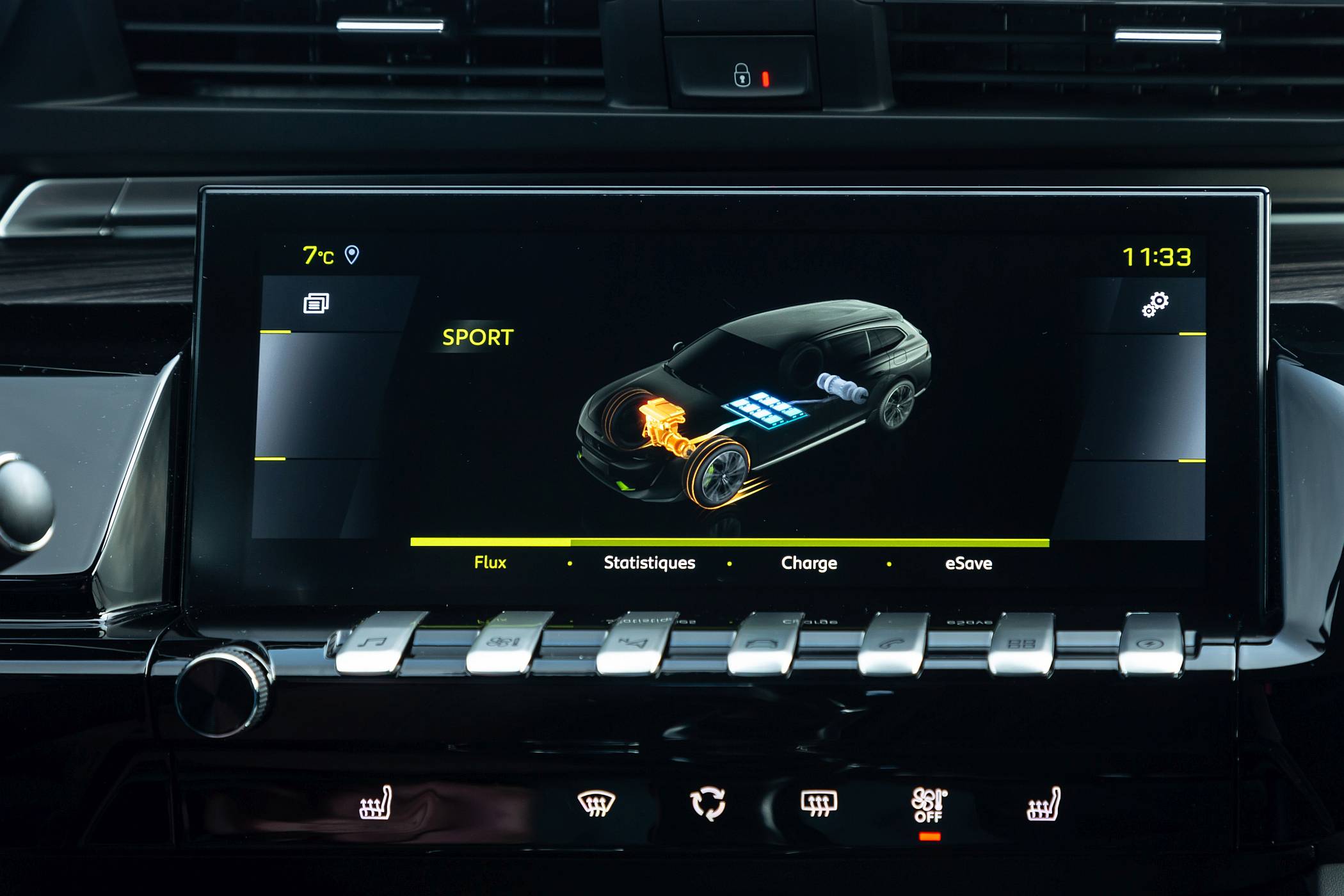 Em termos mecânicos, a potência máxima é de 360 CV, com 520 Nm de binário, valores alcançados pela combinação das energias térmicas e elétricas da marca francesa. Assim, ao motor a gasolina PureTech de 200 CV juntam-se dois motores elétricos, um na dianteira com 81 kW (110 CV), acoplado à caixa de velocidades automática de oito velocidades (EAT8), e outro na traseira, com 83 kW (113 CV). A alimentar os dois motores elétricos está uma bateria de 11.8 kW e um carregador embarcado de 3.7 kW.