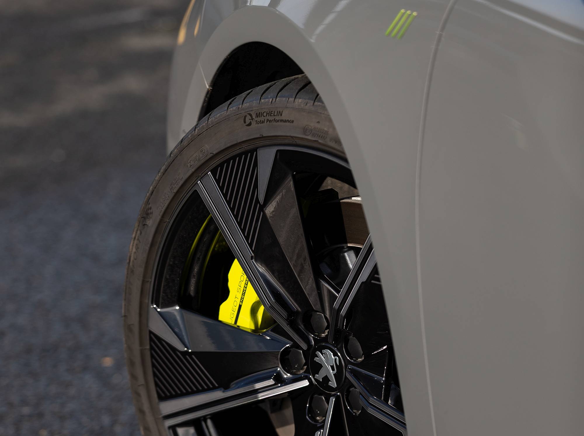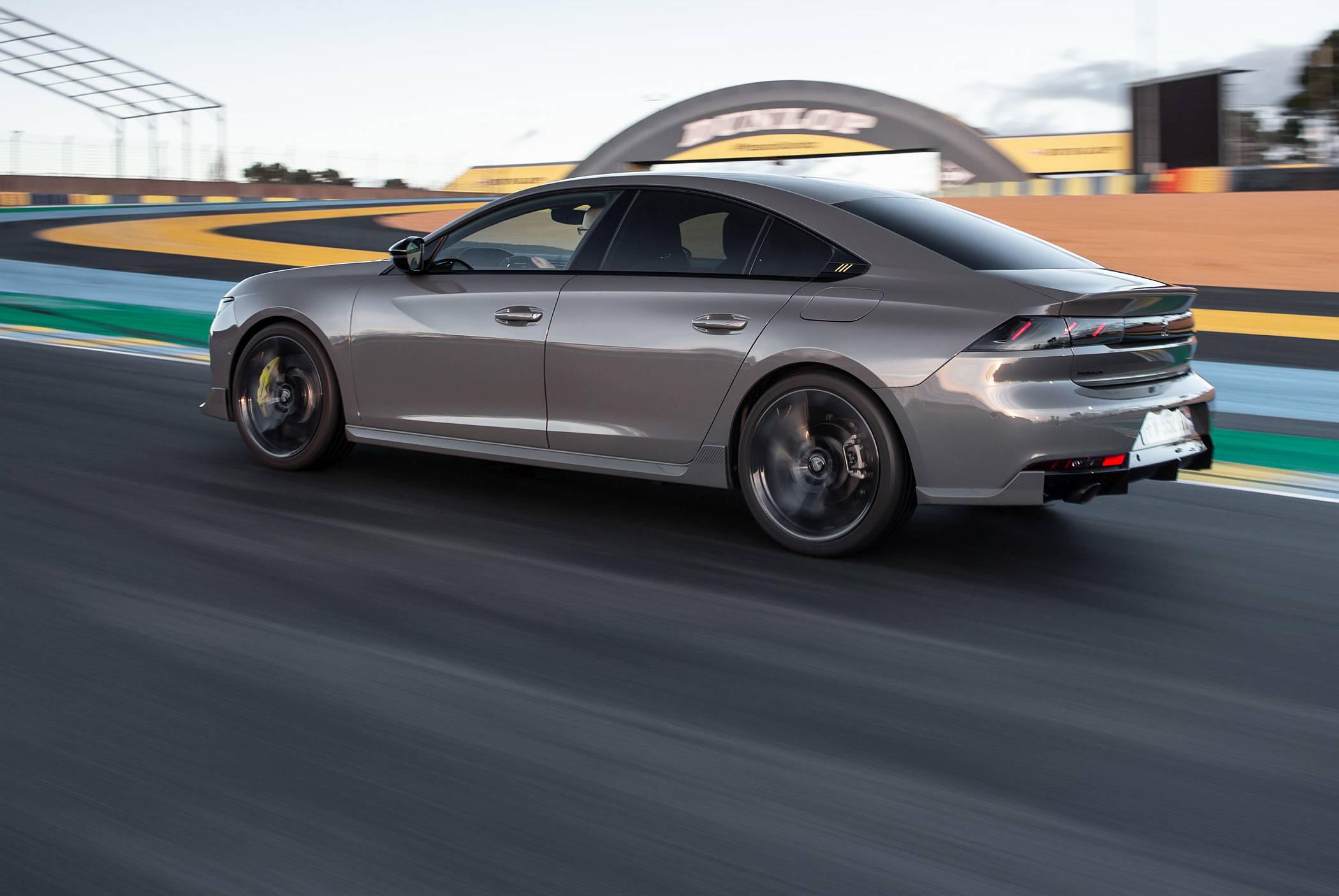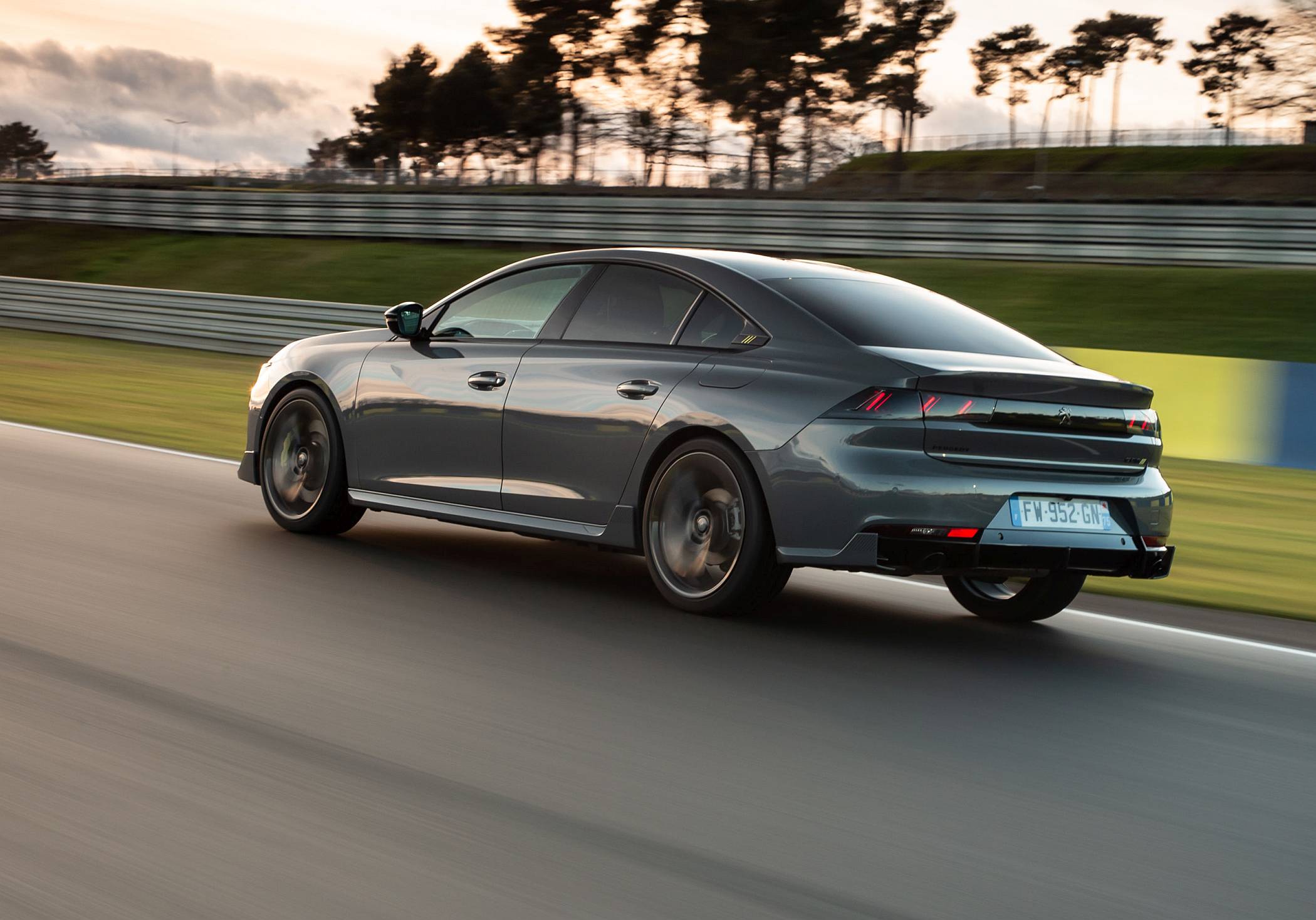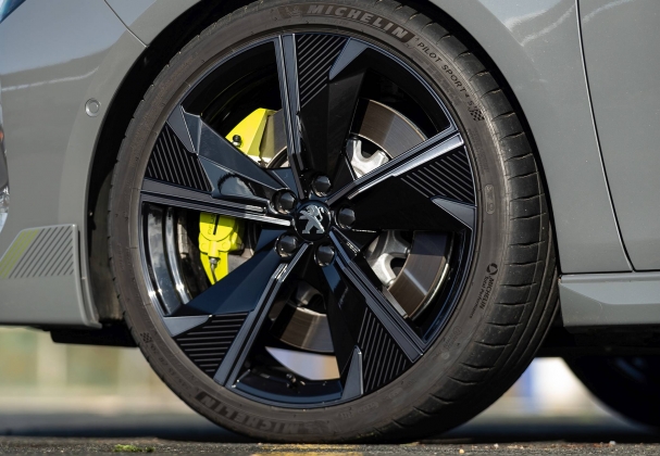 Se a potência é inédita, também os valores de performances são novos para um modelo de produção em série na Peugeot. A aceleração dos zero aos 100 km/h cumpre-se em 5,2 segundos, com velocidade máxima de 250 km/h (limitada). Os primeiros 1000 metros com arranque parado são feitos em 24,5 segundos.Além da motorização híbrida potente, o chassis também foi trabalhado para alcançar um compromisso entre conforto e comportamento de elevada qualidade. Recorre assim a sistema de amortecimento variável em três modos (Comfort/Hybrid/Sport), menor altura ao solo, vias ampliadas em 24 mm na frente e 12 mm na traseira, discos de travões dianteiros com 380 mm de diâmetro e pinças fixas de quatro pistões e jantes de 20 polegadas de diâmetro, com pneus Michelin Pilot Sport 4S.