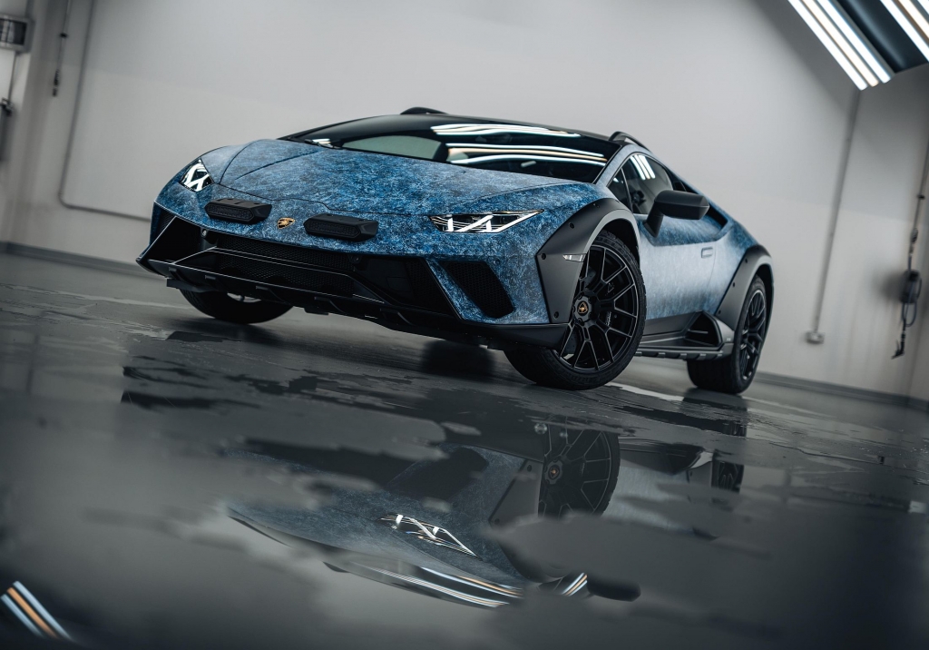 O Huracán Sterrato ‘Opera Única’ inspira-se, pois, nas estradas da Costa Esmeralda, sobressaindo pelo seu exterior pintado à mão, com três cores utilizadas para criar um efeito cristal, similar ao de um líquido congelado: ‘Blu Amnis’ é usado como cor primária, à qual é depois aplicada à mão uma segunda camada de tinta ‘Blu Grifo’ e uma terceira, ‘Blu Fedra’, num processo que leva mais de 370 horas.
