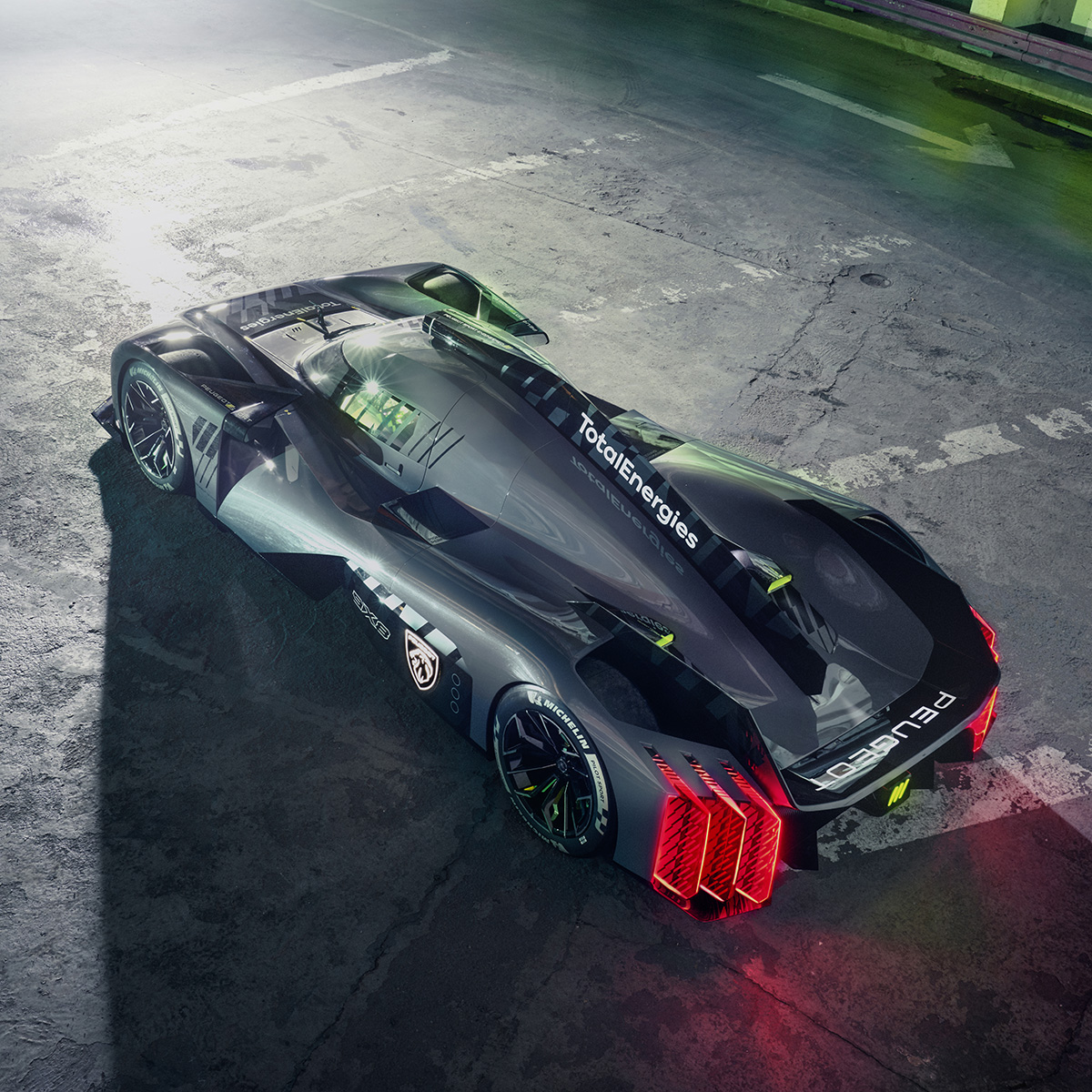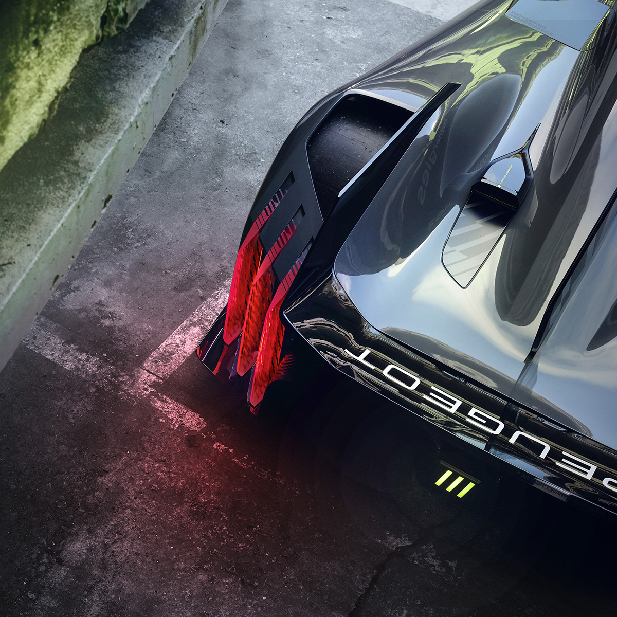 Na equipa de Design da Peugeot há muitos fãs de corridas de resistência e, em especial, das 24 Horas de Le Mans. Tendo estado lá como espectadores, sabem que à noite, assistindo de fora da pista, os sinais distintivos dos automóveis não são muitos visíveis. Alguns veículos podem ser reconhecidos pela acústica dos motores, mas, em muitos lugares, a presença visual limita-se, frequentemente, a elementos de luz que se desvanecem durante a noite.”