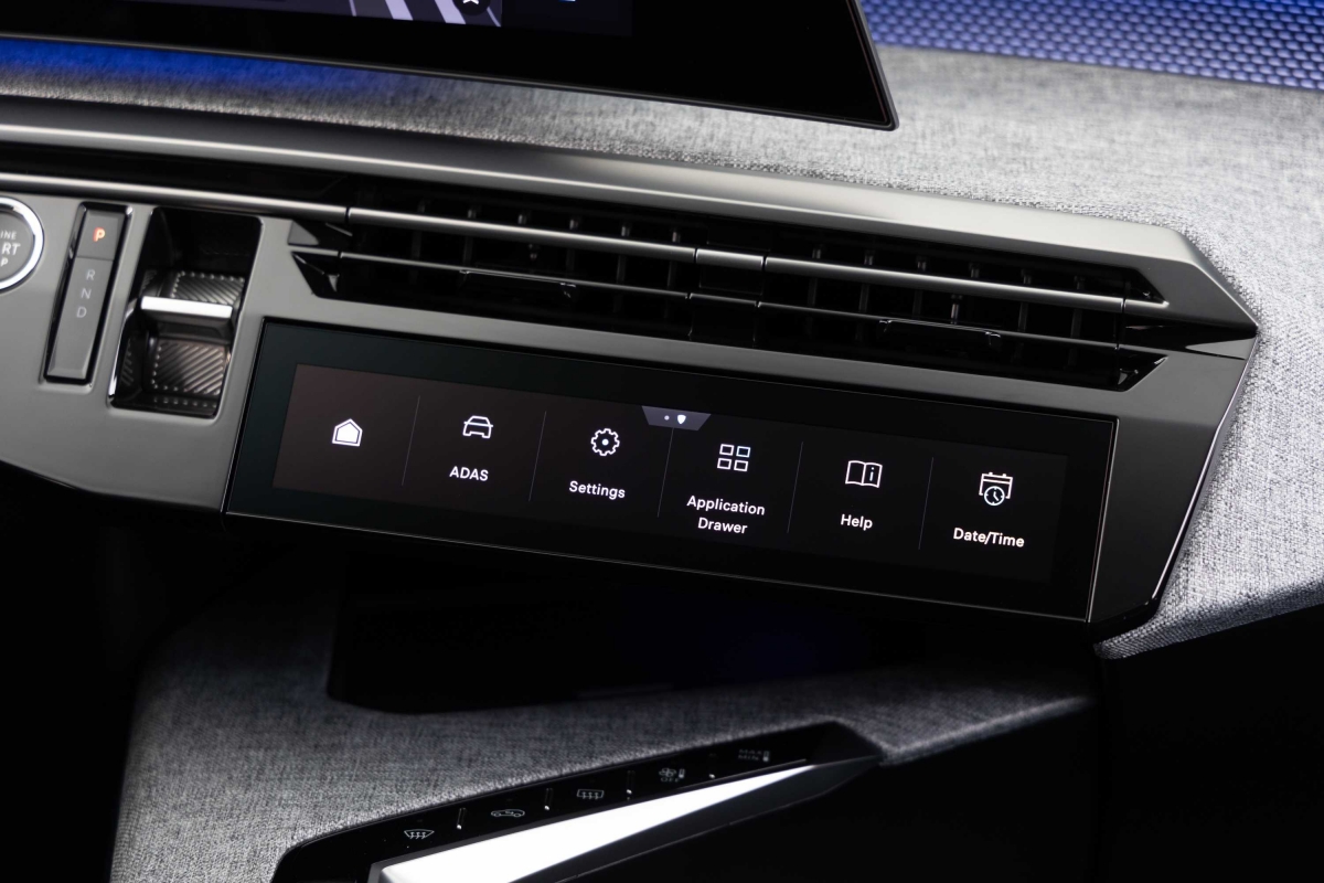 Um terceiro ecrã tátil, mais estreito e instalado logo abaixo, junto ao friso onde normalmente encontramos os botões físicos para as diferentes funcionalidades, oferece atalhos diretos para uma série de funções, permitindo facilmente ligar e desligar os sistemas ADAS mais intrusivos, caso necessário, por exemplo. Também estes atalhos são personalizáveis e o ecrã oferece feedback sonoro ao ser manuseado.