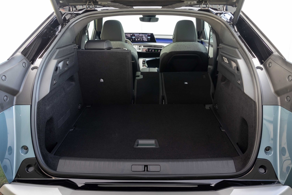 A mesma sensação decorre quando abrimos a bagageira (portão elétrico), a qual oferece um espaço muito generoso (588 litros), incluindo um fundo falso para guardar os cabos de carregamento – algo crucial, já que não existe qualquer “frunk”, ou seja, bagageira sob o capot.