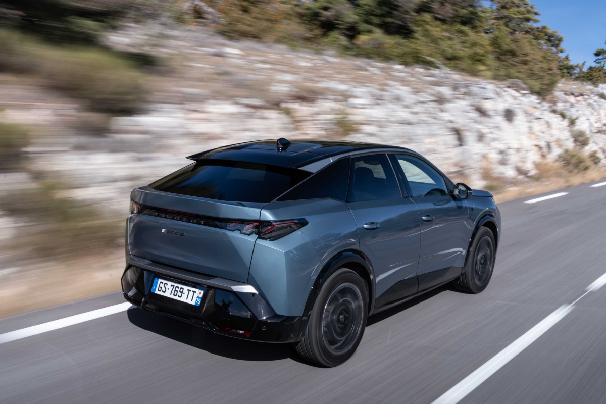 Este novo 3008 vai estar apenas disponível em versões eletrificadas (híbrido e híbrido plug-in) e, no caso do E-3008 testado, 100% elétrica. Neste caso, temos um motor elétrico, produzido pela marca em França, com 210 CV.