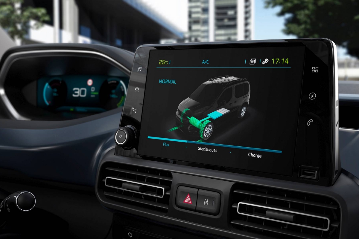 De resto, recorre ao sistema i-Cockpit de organização de comandos e ergonomia no interior, com um ecrã digital para a instrumentação e outro, tátil, de 8.0 polegadas para o sistema de infoentretenimento disposto no tablier. Nesse ecrã, os condutores podem aceder aos sistemas multimédia e informações de carregamento e de consumos do veículo, bem como configurar parâmetros de carregamento, algo que também pode ser feito a partir da aplicação de smartphone MyPeugeot. A conectividade aos sistemas Apple CarPlay e Android Auto está assegurada.