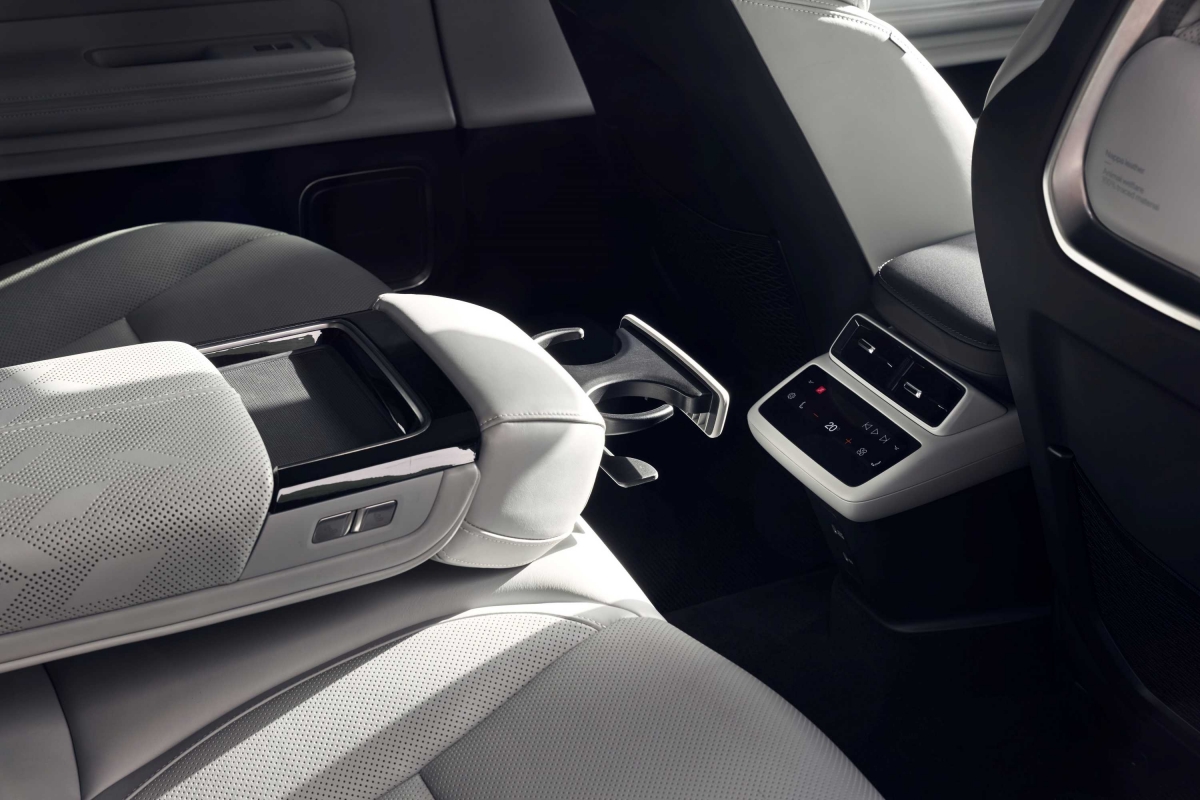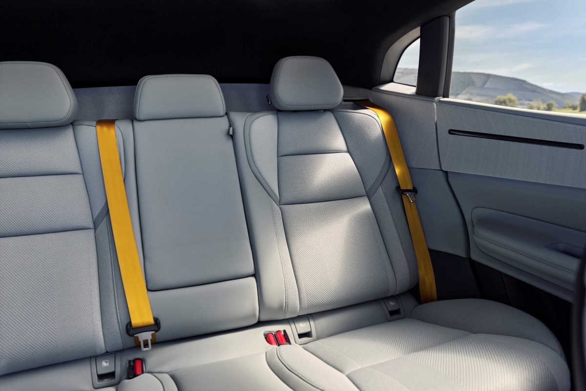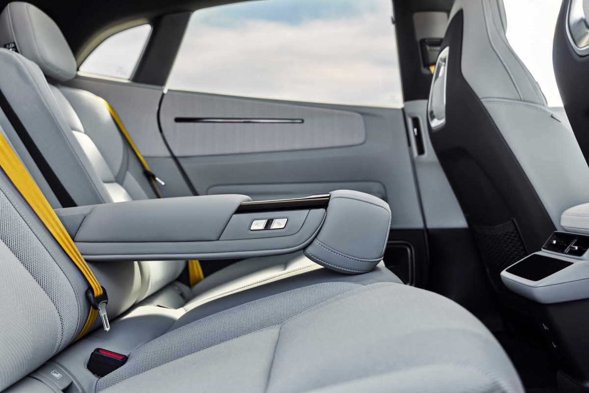 Os bancos traseiros são outro dos grandes trunfos do Polestar 4. Espaçosos e cómodos, estão integrados num espaço aberto e são reclináveis. O espaço para as pernas está ao nível das melhores berlinas.