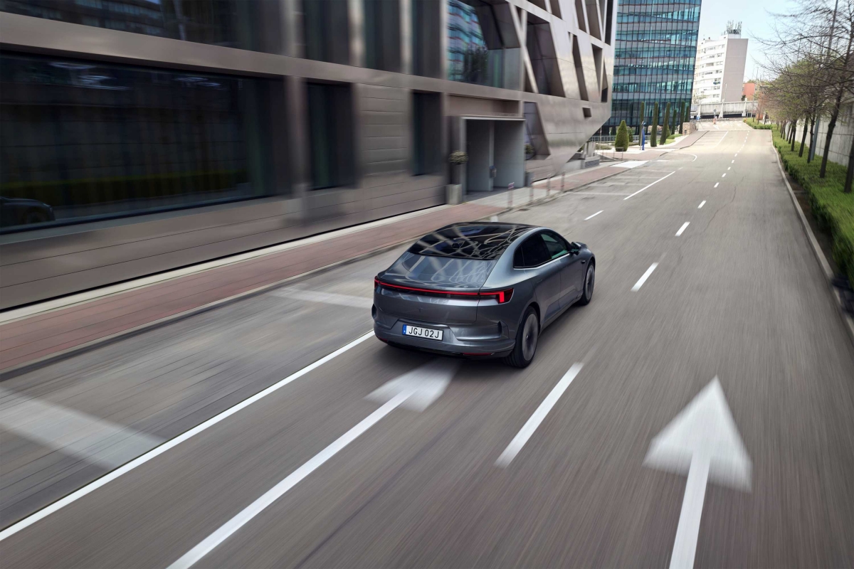 A ausência do vidro traseiro não choca visualmente. Bem pelo contrário, o Polestar 4 é um automóvel elegante.