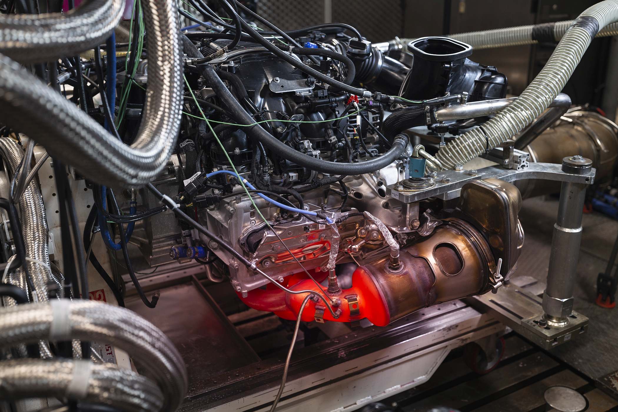 Um ponto ao qual se deu grande atenção foi no da capacidade de correta lubrificação do motor em virtude das altas forças de aceleração lateral e longitudinal em pista, contando para o efeito com um sistema de lubrificação do motor com um reservatório de óleo separado, numa solução inspirada na competição. Das diferenças, Mader enumera, fundamentalmente dois aspetos: o sistema de escape e a unidade de controlo eletrónico do motor. “Tudo o resto é idêntico”, garante aquele responsável da Porsche. Não obstante, com as normas de emissões mais apertadas, o desenvolvimento do motor nesse sentido também foi um desafio, com mais de 600 testes de emissões efetuados pela marca de forma a cumprir a vertente ambiental.