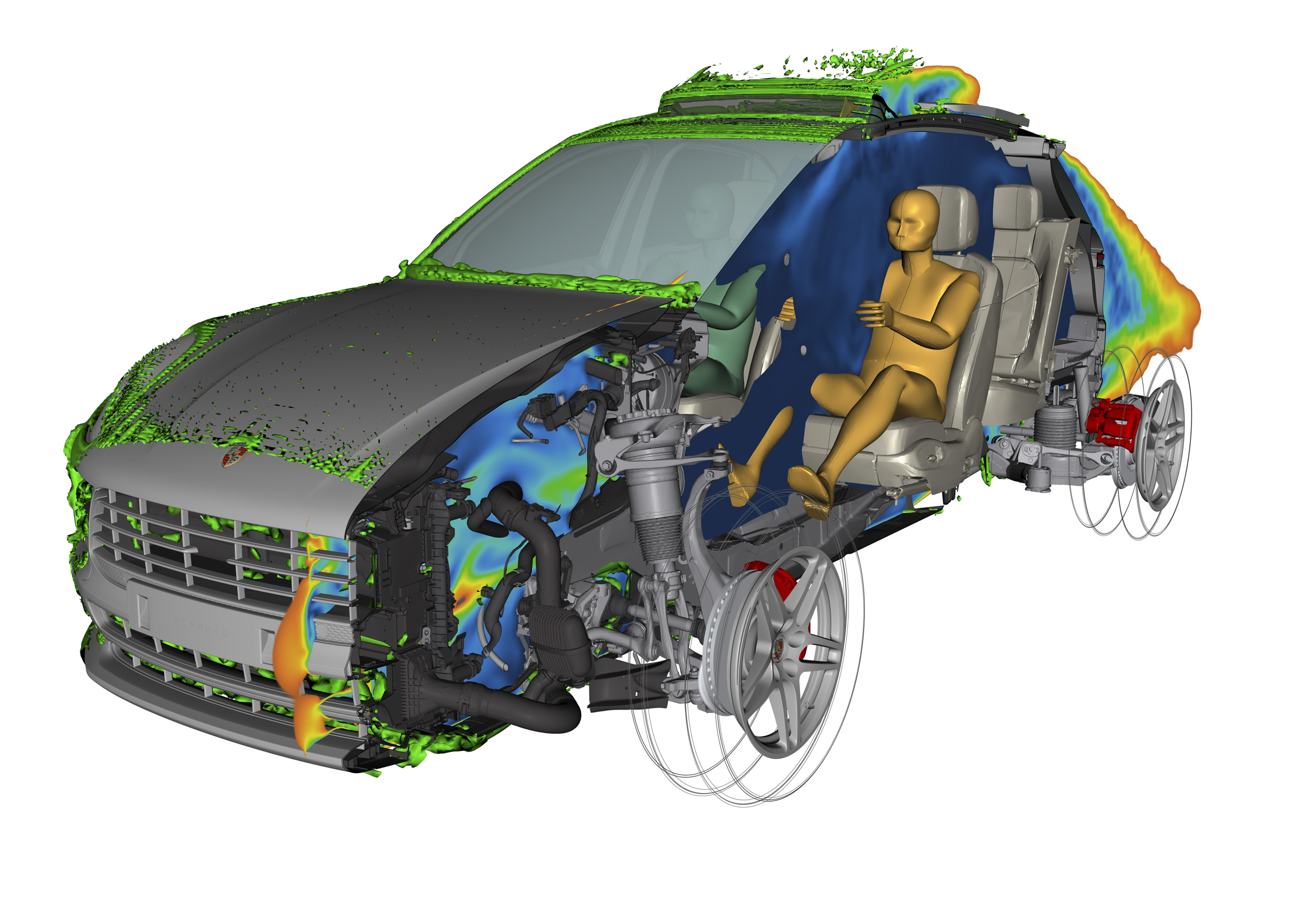 Novos métodos permitem agora uma simulação muito precisa tanto da aerodinâmica como da termodinâmica. “O mundo digital é indispensável para o desenvolvimento do Macan totalmente elétrico,” afirma o especialista em aerodinâmica, Wiegand. O sistema de propulsão elétrica – desde a bateria até ao motor – requer um conceito de controlo da temperatura e arrefecimento totalmente separado, que é muito diferente do utilizado num veículo com propulsão convencional. Enquanto a janela de temperatura nos motores de combustão oscila entre os 90 e os 120 graus, o motor elétrico, a transmissão e a bateria de alta voltagem requerem um intervalo entre os 20 e os 70 graus, dependendo do componente. Os cenários críticos não ocorrem em estrada, mas sim durante os processos de carregamento rápido sob elevadas temperaturas exteriores. Contudo, os especialistas da Porsche são capazes de calcular de forma precisa e otimizar a posição, o fluxo e a temperatura.