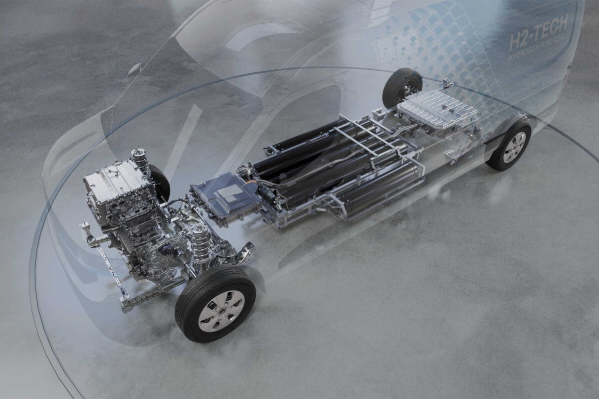 No novo Master H2-Tech – produzido na fábrica de Batilly, perto de Metz (França) –, os depósitos de hidrogénio estão integrados no chassis e a pilha de combustível (fabricada em Flins) atinge 47 kW, enquanto a bateria adicional de 20 kWh (recargas até 11 kW) assegurará melhor eficiência e estabilidade de todo o sistema, aproveitando-se também a energia cinética das desacelerações e das travagens. Há duas opções de tanques de H2 (da Forvia e da Opmobility), a saber: as versões L2 e L3 com uma capacidade de 7,5 kg, além da L3 com cinco reservatórios e 9 kg no total.