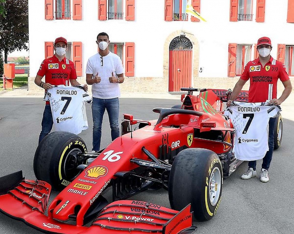 Entusiasta dos automóveis desportivos, Cristiano Ronaldo conta na sua coleção com uma série de modelos de elevada exclusividade, alguns dos quais da Ferrari. O português, que joga atualmente na Juventus, de Itália, passou pela fábrica da marca, em Maranello, e aproveitou para dar duas camisolas autografadas aos pilotos de Fórmula 1.