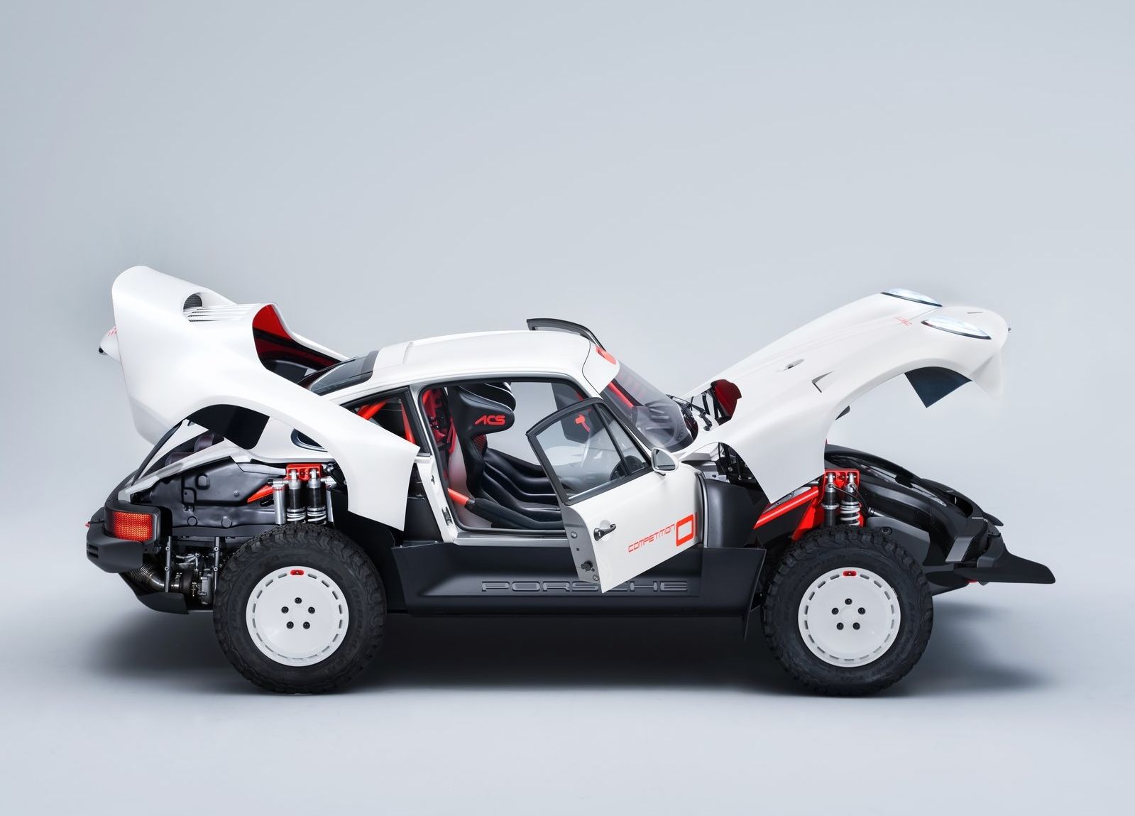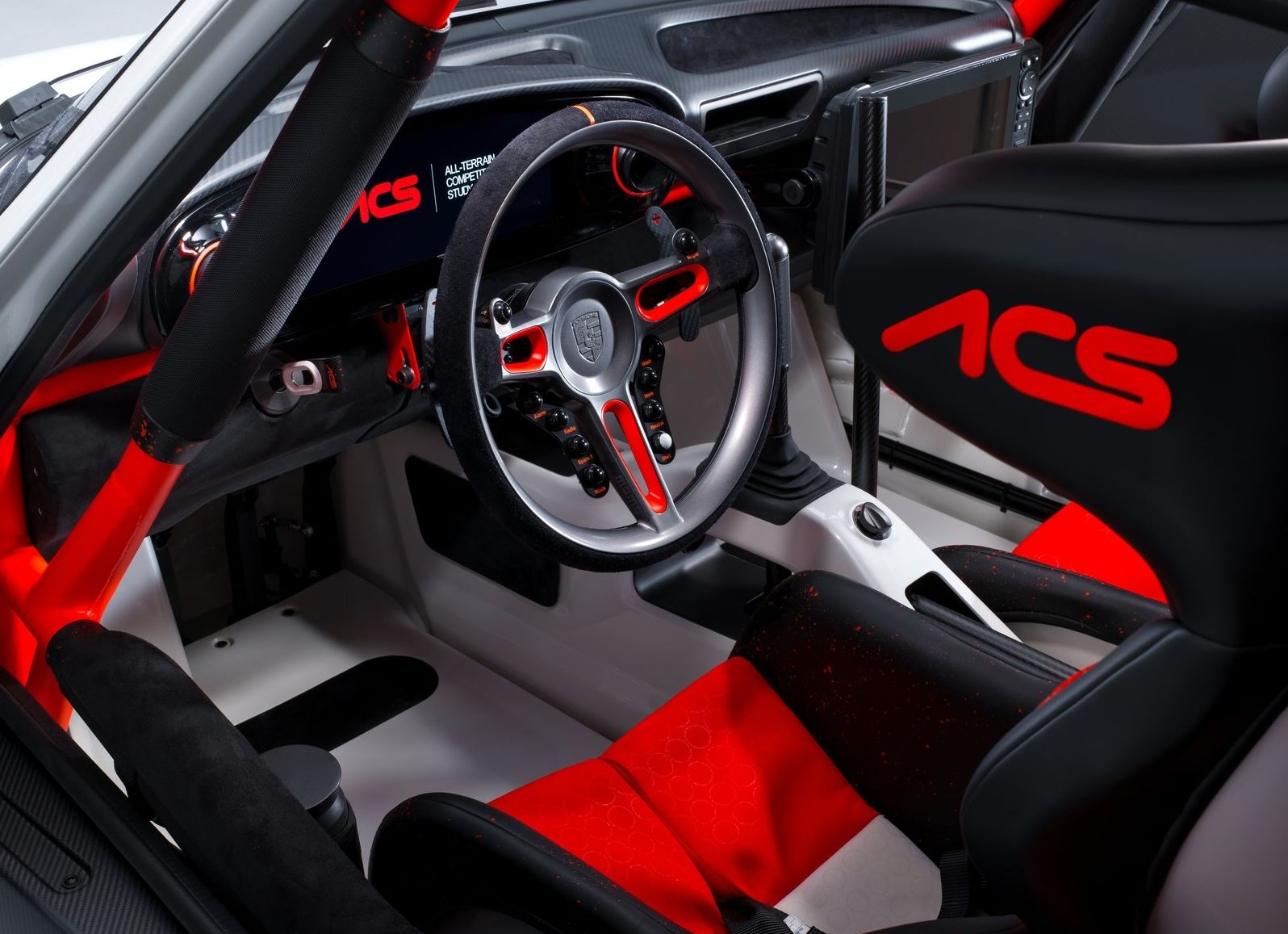 Entre as alterações feitas ao 911 ACS estão o reforço estrutural do chassis, a enorme distância ao solo, com suspensão reforçada e de curso aumentado (ajustável em cinco vias com oito amortecedores no total), painéis da carroçaria em fibra de carbono de fácil substituição e com facilidade de acesso ao fundo do carro, tração integral permanente e um motor de seis cilindros bi-turbo de 3.6 litros com potência a começar nos 450 CV. A caixa sequencial de cinco velocidades deriva da competição, com diferenciais dianteiro, central e traseiro.