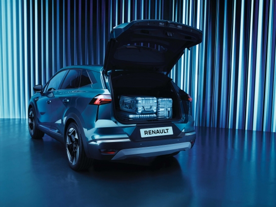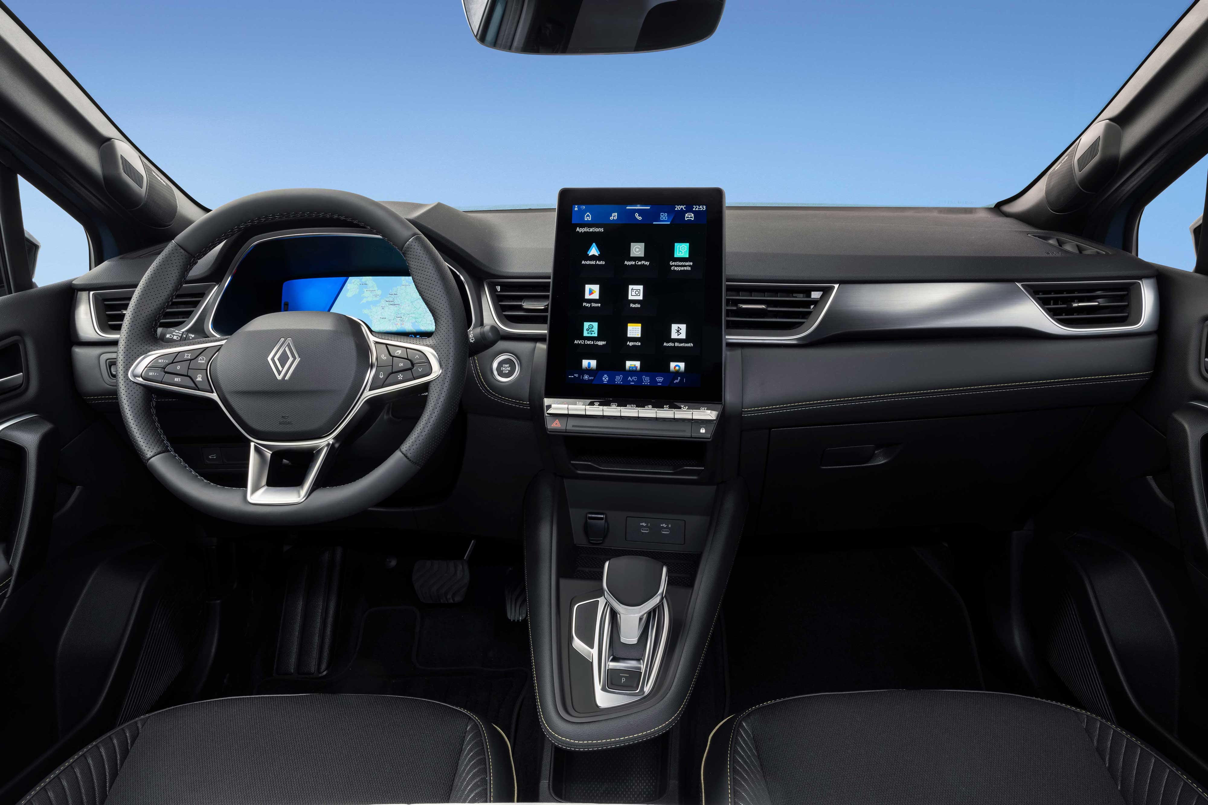 No interior, encontramos soluções partilhadas com o Captur. As mais evidentes são o ecrã central de 10,4 polegadas, com orientação vertical e teclas de atalho rápido em baixo, o painel de instrumentos digital de 10,3’’ e ainda o seletor de marcha elevado na consola central. O sistema de infoentretenimento OpenR Link tem por base o Android Automotive com mais de 50 aplicações como o Google Maps pré-instalado. Pode ser utilizado com comandos por voz através do Google Assistant, mas tem também suporte para Apple CarPlay. Existe a possibilidade de escolher o sistema de som de alta-fidelidade Harman Kardon e a luz ambiente com 48 cores à escolha. Opcionalmente pode inda ser instalado o tejadilho panorâmico Solarbay, que já tínhamos experimentado no Scenic E-Tech Electric.