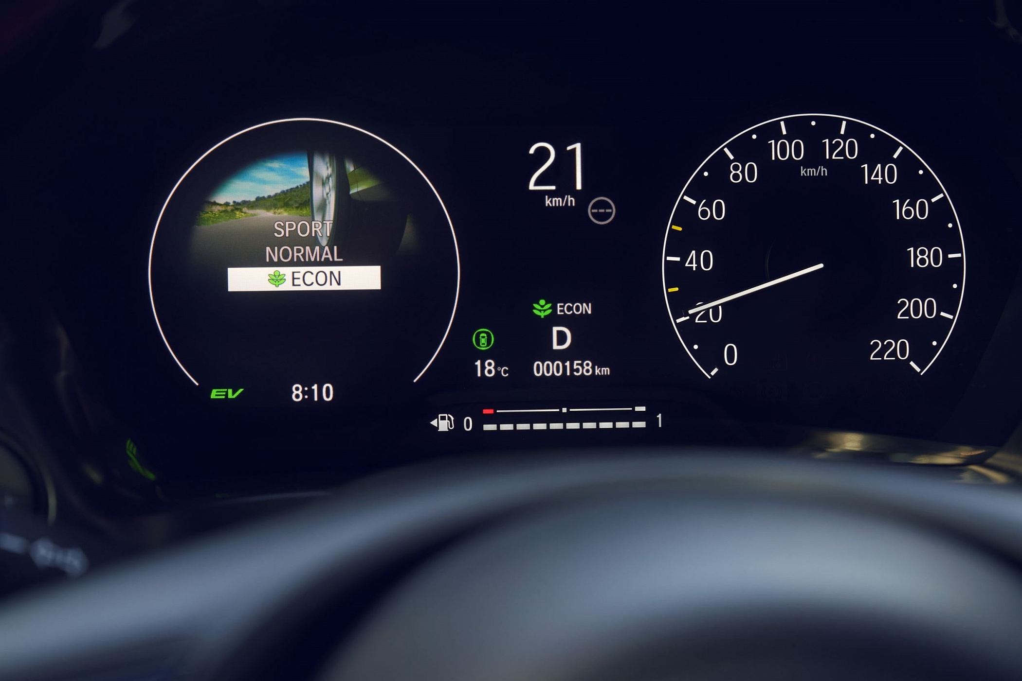O modo ‘Hybrid’ é o segundo mais utilizado, com o motor térmico a ser ligado para carregar a bateria de iões de lítio e assim fomentar a carga necessária para alimentar o motor elétrico. Por fim, em velocidades de autoestrada, seguindo o mesmo princípio que no Jazz, utilizando uma engrenagem fixa para ligar o motor diretamente às rodas dianteiras e assim movimentar o carro de uma forma que a Honda considera mais eficiente. Neste modo, o motor elétrico pode ajudar com alguma potência.