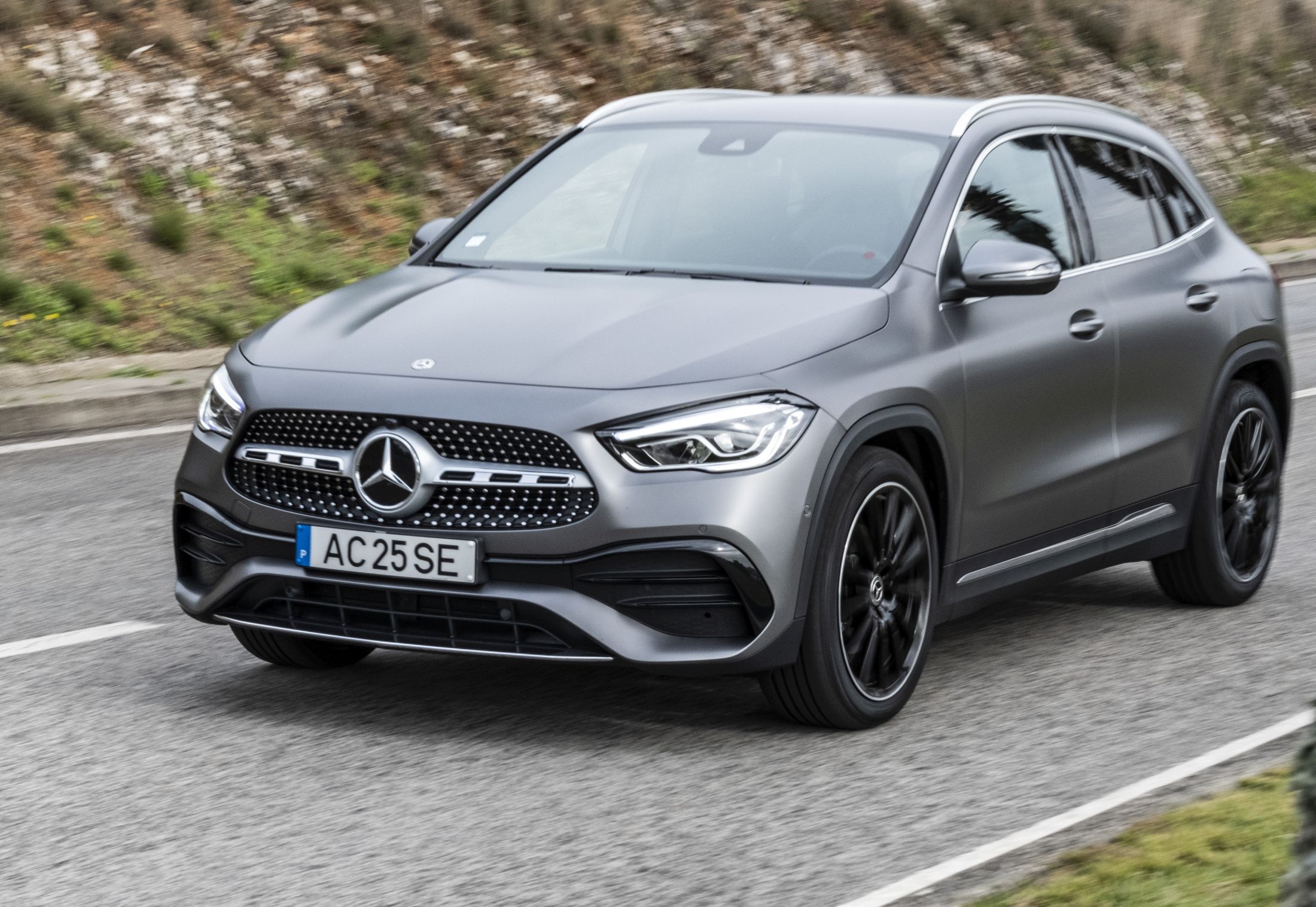 Dinamicamente, o GLA exibe precisão assinalável, com um acerto muito mais orientado para a condução aguerrida do que para o conforto. Equipado com a suspensão opcional ‘conforto rebaixada’ e jantes AMG Line de 20 polegadas, o que ganha na precisão e estabilidade em curva perde em conforto, embora seja um compromisso que agradará a uma franja de clientes mais jovem. Quando o percurso se torna mais sinuoso, a direção comunicativa e precisa e o chassis bastante rígido – cortesia da nova plataforma compacta – permitem extrair o melhor do GLA em termos dinâmicos.