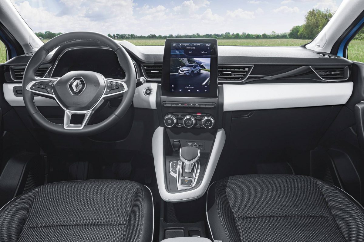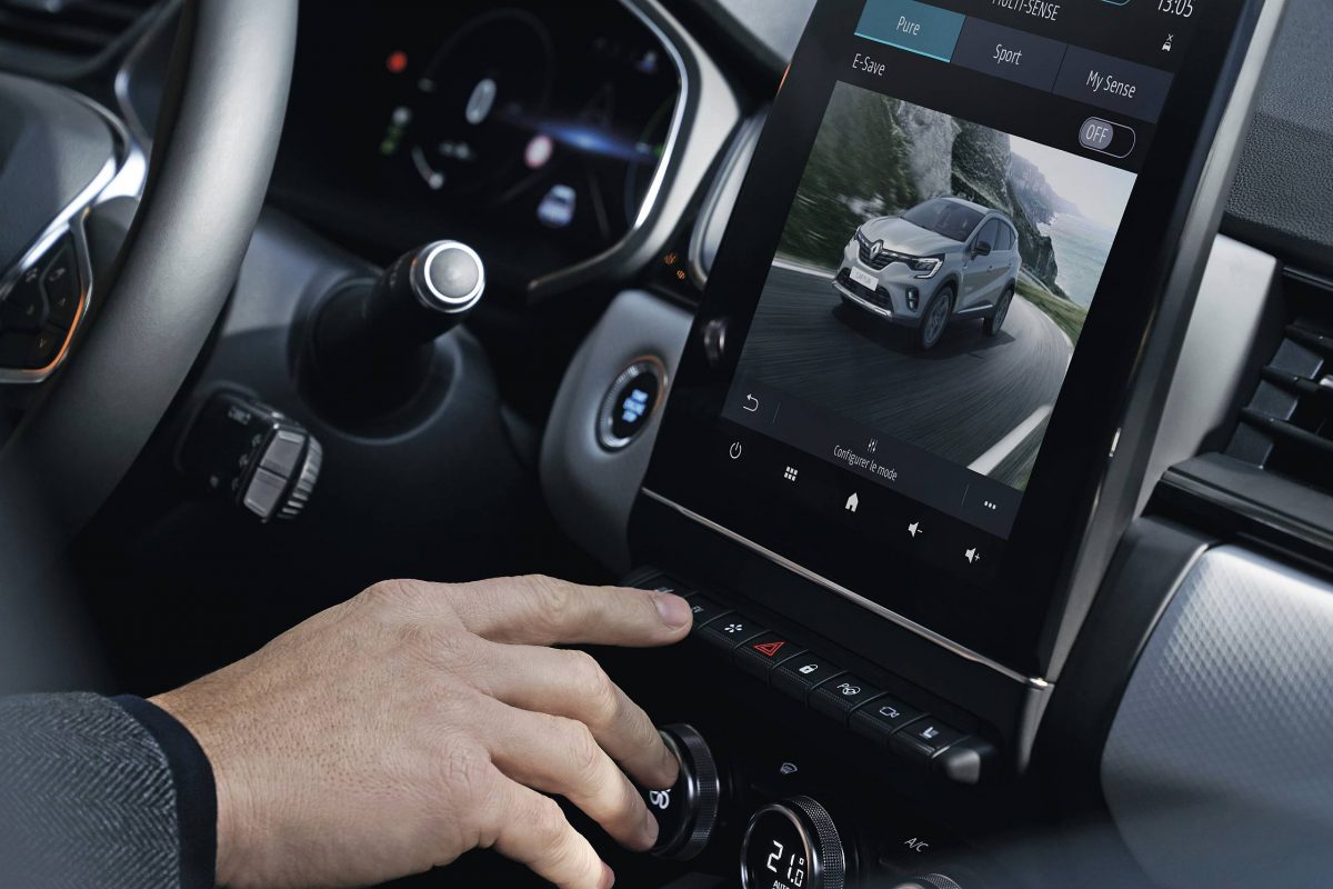 A bordo, o Captur E-Tech oferece as mesmas virtudes dos demais modelos da gama, ou seja, a mesma conveniência e funcionalidade tecnológica, com novo painel de instrumentos digital de 10.2” configurável, a que se junta o ecrã tátil central de 9.3” que apresenta todas as funções de infoentretenimento, incluindo as configurações de segurança e de configuração do veículo.
