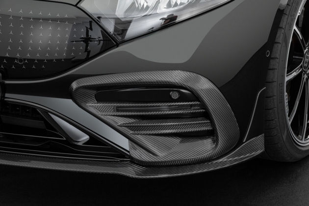 A grande berlina elétrica, já de si uma das mais eficientes do setor automóvel, beneficia de uma redução da altura ao solo em 15 mm na dianteira e em 20 mm na traseira, graças a mexidas na suspensão pneumática BRABUS SportXtra para Airmatic.