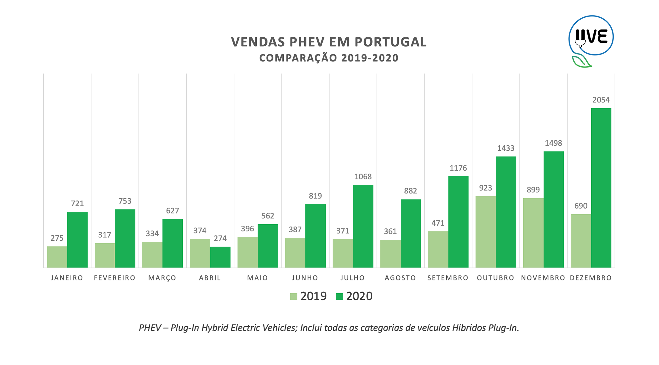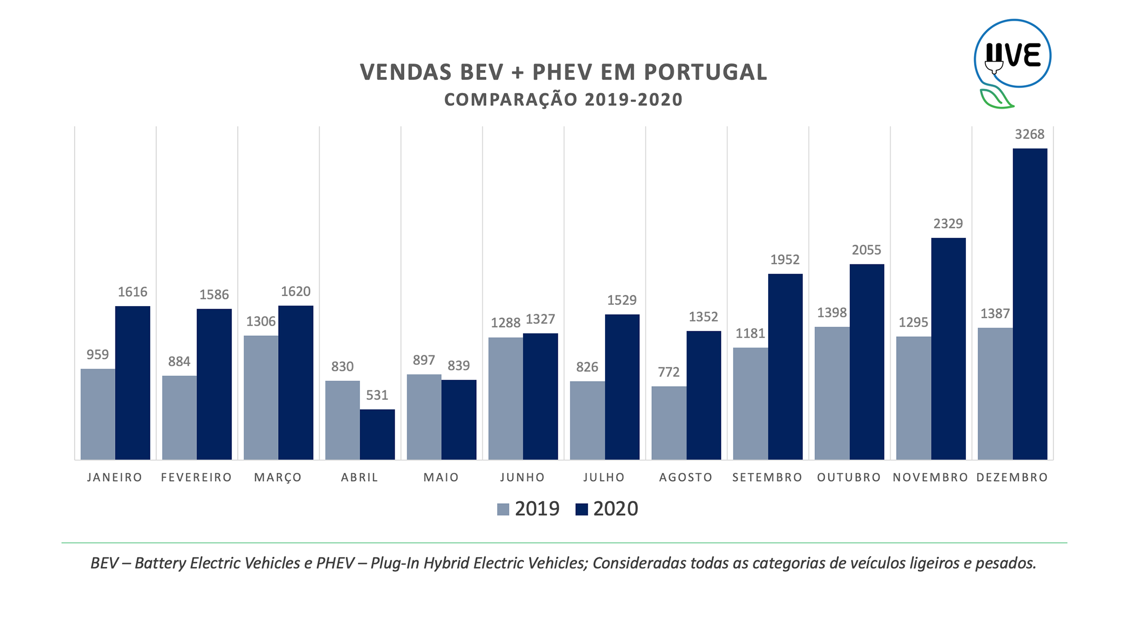 A Associação de Utilizadores de Veículos Elétricos (UVE) considera 2020 como o ano do grande arranque e consolidação das vendas de Veículos Elétricos em Portugal, tendo sido ultrapassada a fasquia das 20.000 unidades comercializadas, entre unidades 100% elétricas (BEV) e híbridos Plug-in (PHEV).