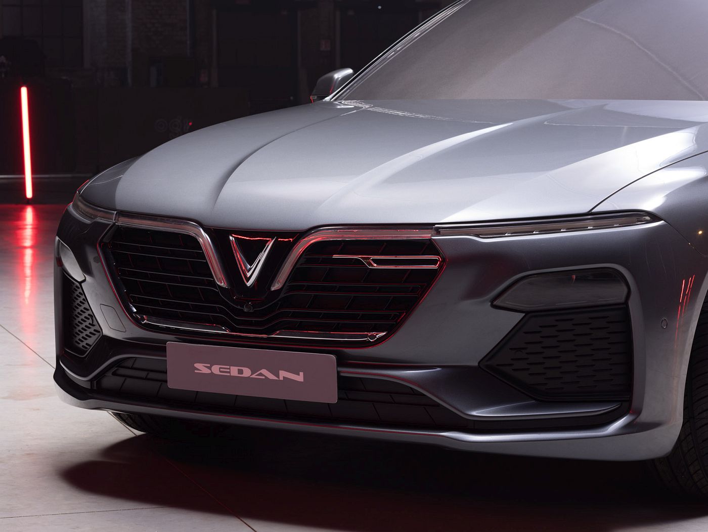 Elemento diferenciador é o emblema cromado em V no centro da grelha que, depois, se ‘expande’ para os faróis, com assinatura luminosa em LED, com um outro elemento cromado no lado direito da grelha dianteira a conjugar-se para criar uma interpretação estilística de um ‘F’ em itálico, correspondendo à segunda sílaba de VinFast.