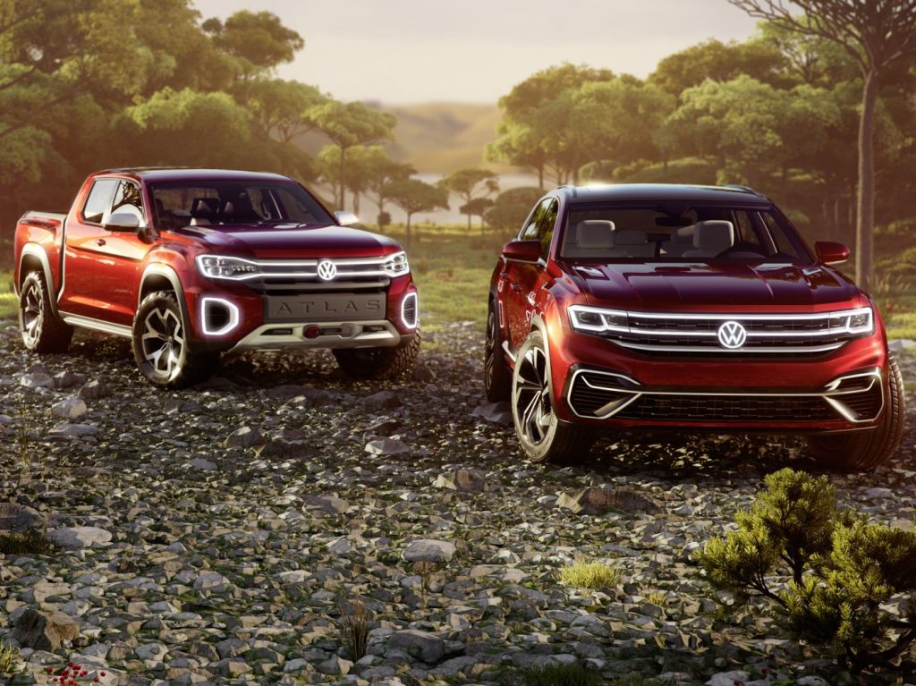 Além desse SUV mais desportivo, a Volkswagen revelará ainda um outro modelo com base na plataforma MQB, neste caso mais versátil, a pick-up Atlas Tanoak, que recebe o seu nome em homenagem a uma espécie de árvore que existe na costa do Pacífico e que atinge os 45 metros de altura. Com um comprimento de 5438 mm, o Atlas Tanoak é mais curto, mas se pelos cânones europeus é grande, pelos cânones dos americanos é ‘apenas’ uma pick-up de segmento médio, como é apelidada pela Volkswagen. Com cabine dupla e cinco lugares, tem ainda uma ‘caixa’ de transporte de 1627 mm de comprimento, 1450 mm de largura e 530 mm de altura. Essa caixa foi pensada para o transporte de bicicletas, pranchas e pequenos barcos.