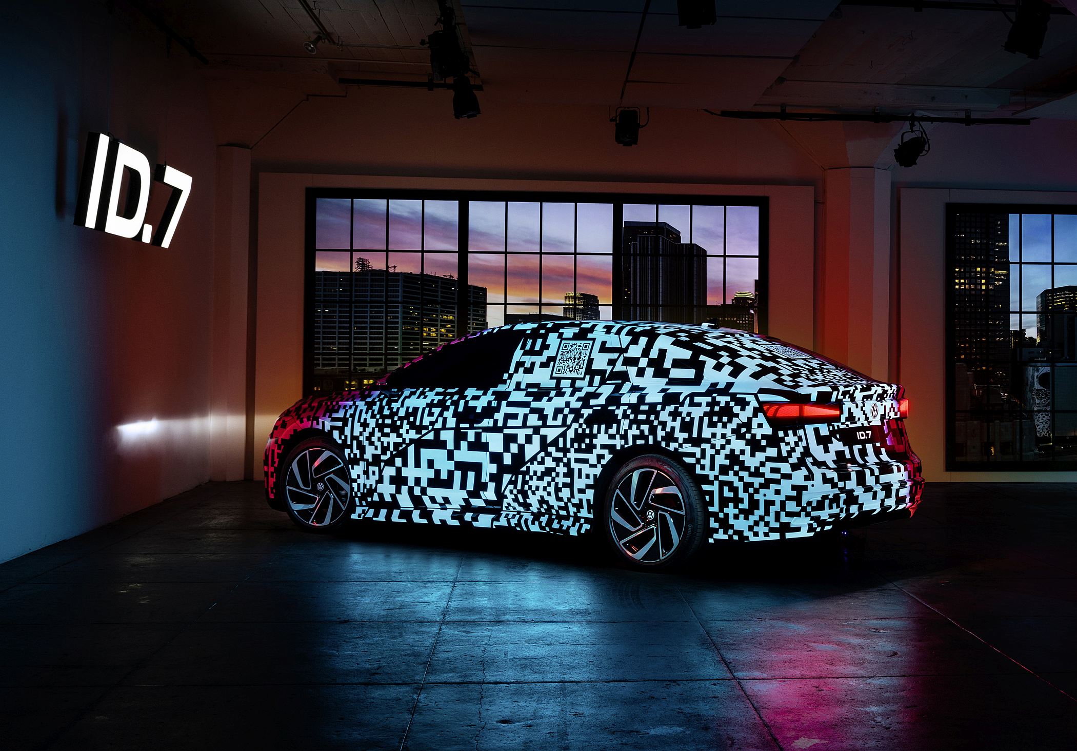 O modelo a expor estará envolto em camuflagem mais evoluída com uma pintura multicamada (40 camadas) que consegue criar determinados efeitos de luz em partes específicas do veículo, efetuando também uma ligação com o mundo digital por intermédio de códigos QR e efeitos eletroluminescentes que podem até variar consoante o ritmo da música no habitáculo. O ID.7 foi antecipado pelo ID. Aero concept revelado anteriormente na China, com um conceito aerodinâmico mais apurado que possibilitará também atingir autonomias mais elevadas.