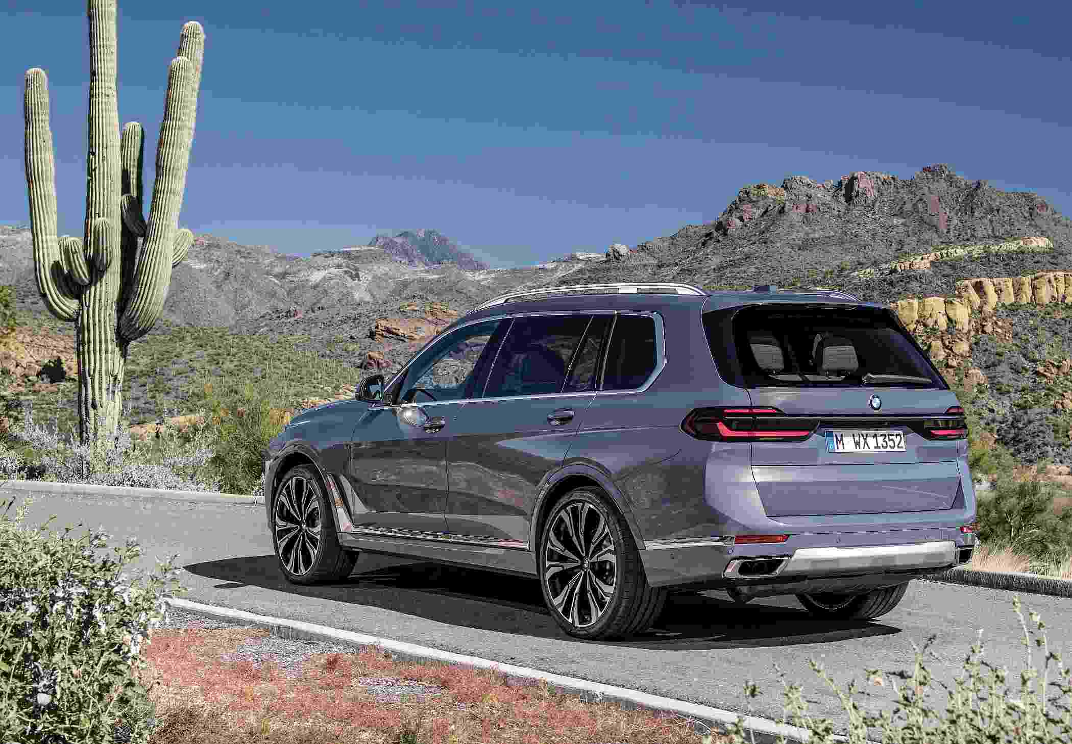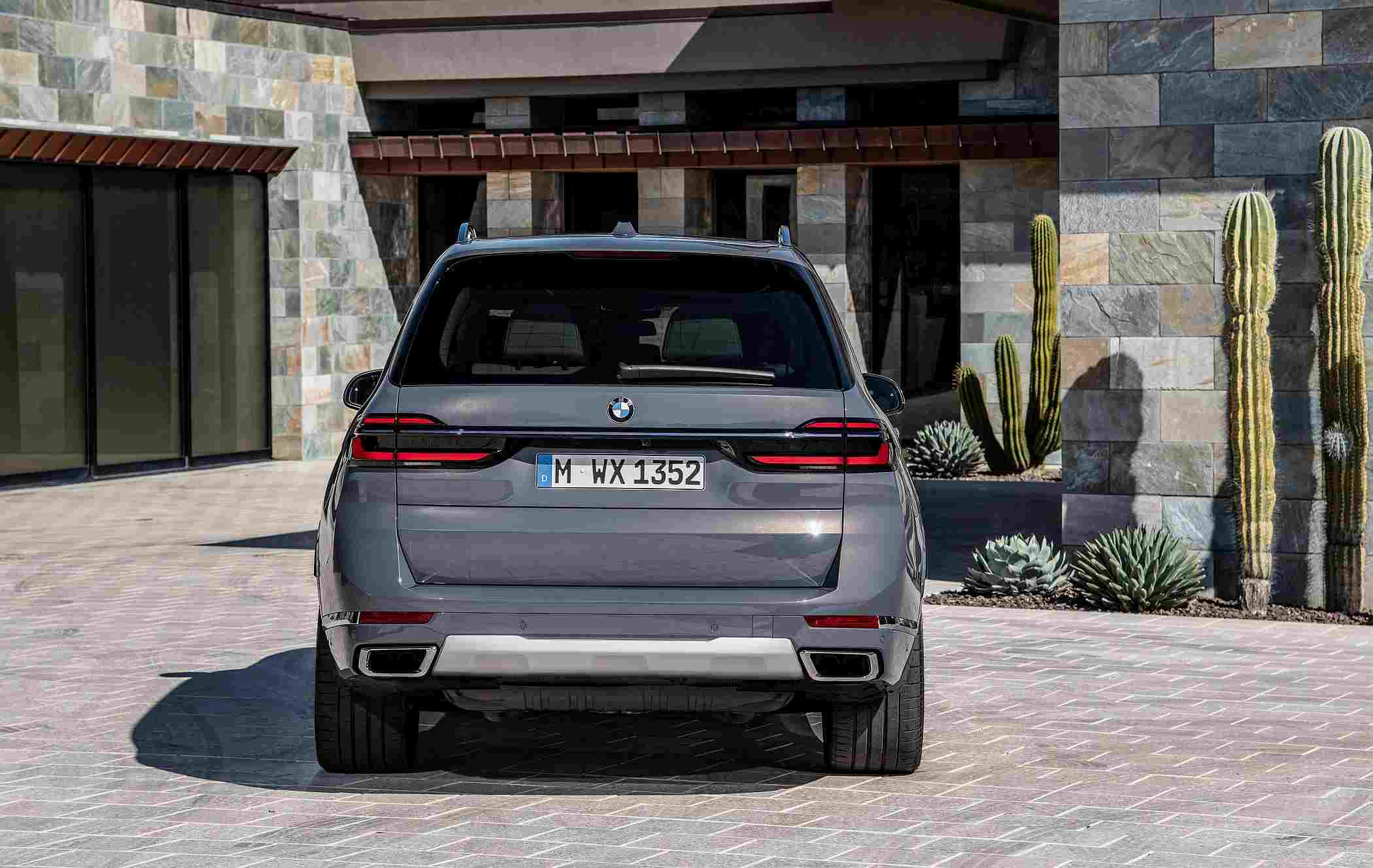 A nova estrutura visual da dianteira é, de acordo com a marca bávara, uma forma de reforçar a presença imponente do X7 quando visto de frente. A grelha pode ser iluminada, sendo de série no modelo de topo, o X7 M60i xDrive, e opcional nos restantes. Na traseira, o estilo dos farolins esguios diferencia-se agora por ter uma maior estruturação tridimensional, além de uma barra cromada a unir os grupos óticos traseiros.