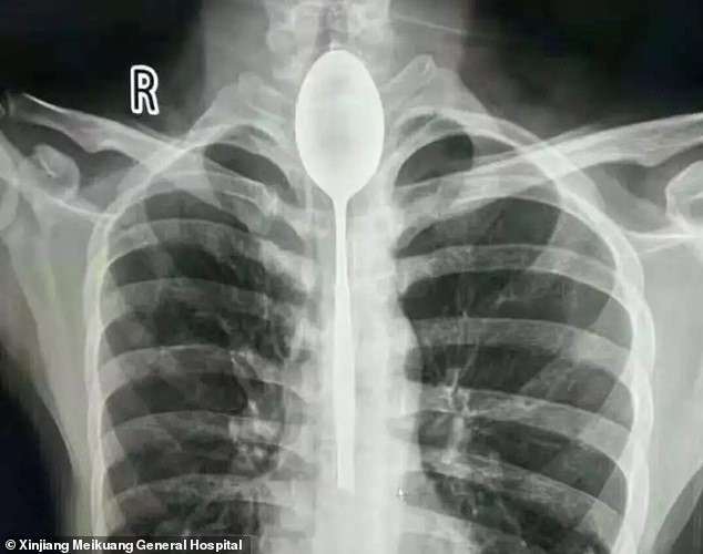 Depois de um jantar de amigos e uns copos a mais, começaram as irresponsabilidades. Tudo aconteceu na China, quando um homem engoliu uma colher de 20 cm depois de perder uma aposta. Porém, como não teve problemas respiratórios, bebia e comia normalmente, deixou-se ficar. Viveu assim durante um ano. O alarme suou quando esse homem chinês levou um soco no peito e a colher perfurou-lhe o esófago. Começou a ter dores fortes e dificuldades em respirar, o que o levou a ir ao hospital Xinjiang Meikuang. “Fiquei chocado. Nunca tinha visto algo assim. Quando internamos o paciente, o seu esófago …