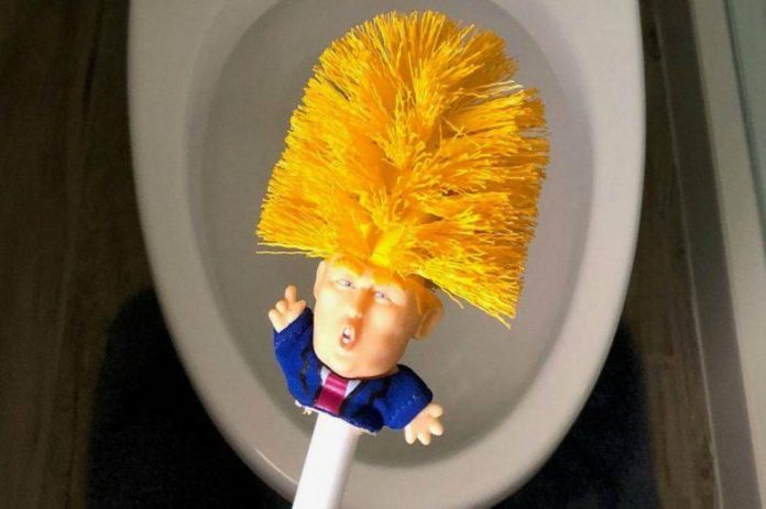 Alguém teve a (in)feliz ideia de criar um piaçaba à imagem de Donald Trump. E você pode comprar um lá para casa. Trump na casa de banho Este utensílio de limpeza é indispensável em qualquer casa de banho. Mas há quem diga que se tiver a imagem do presidentes dos EUA, ainda mais. Na ponta do cabo, foi colocada a cabeça do 45º presidente dos Estados Unidos da América. Escusado será dizer que a escova está “disfarçada” com o enigmático cabelo de Trump. Piaçaba à venda Este acessório está a ser um sucesso em termos de vendas. Disponível no site …