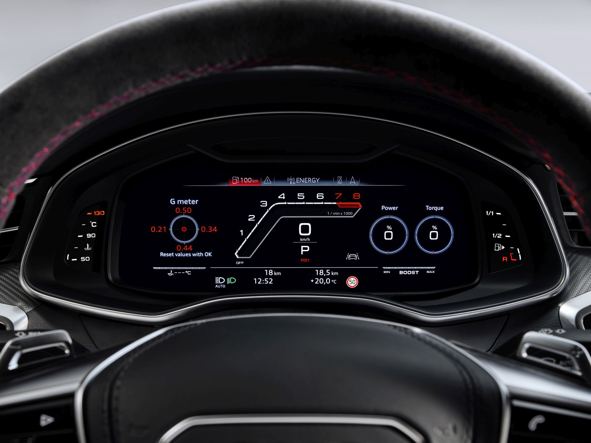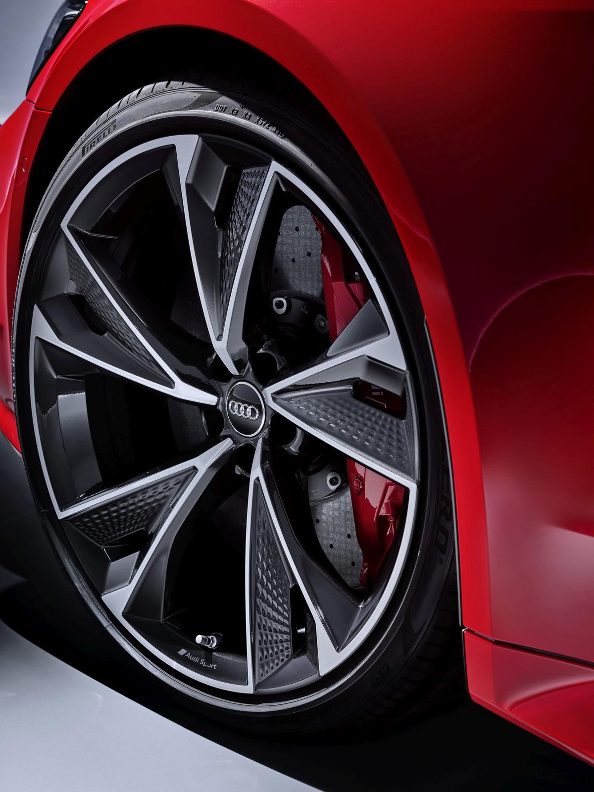 A robustez da carroçaria deixa antever um modelo de cariz desportivo muito vincado, algo que os números da ficha técnica ajudam depois a preencher. O comprimento excede os cinco metros, com 5009 mm de ponta a ponta. A visão agressiva fica bem patente na dianteira, com a grelha ‘Singleframe’ da Audi a ser estilizada, sem limites contrastantes. No entanto, retém uma imagem tridimensional com preto brilhante a dar o tom em termos de contraste visual. Na lateral, vincos pronunciados e saias específicas ‘RS’ com elementos em preto. Já na traseira, uma assinatura luminosa específica, um spoiler retrátil situado na tampa da bagageira e um para-choques com difusor. A iluminação base é já em LED, mas pode ainda receber sistema Matrix LED com laser.