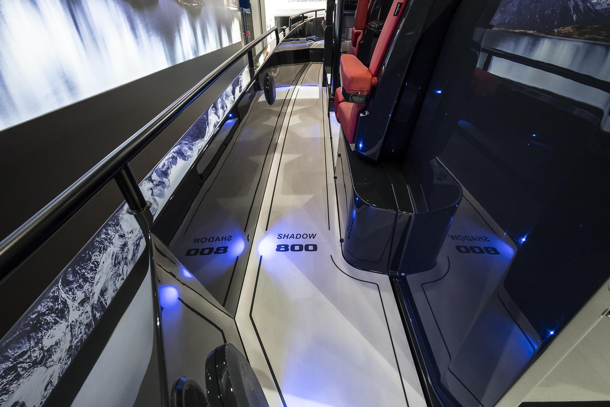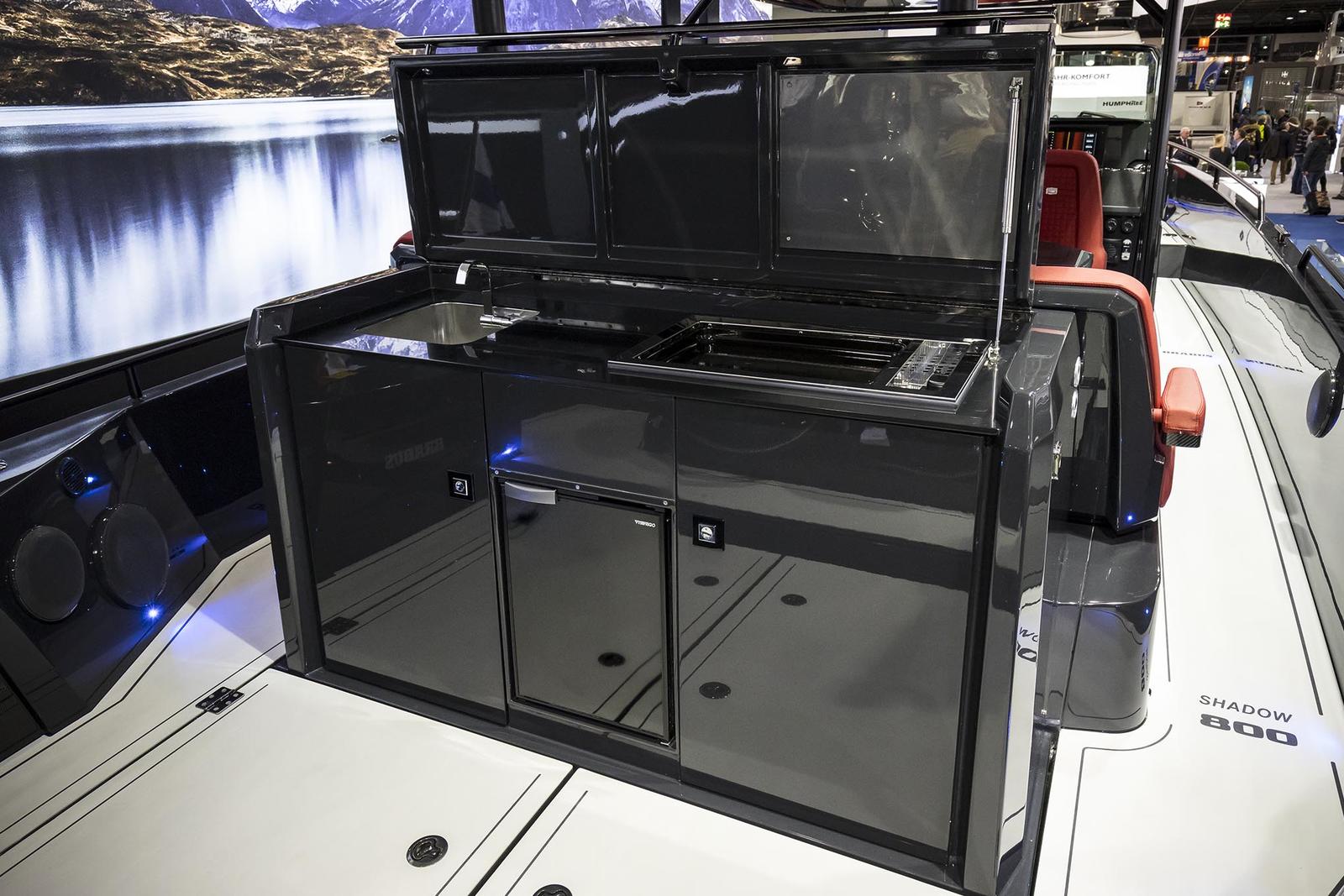 As suas performances também são de alto nível. O Shadow 800 usa dois motores Mercury Verado de 400 cv, o que lhe deve garantir uma velocidade máxima superior a 50 nós (93 km/h). A navegação é feita por GPS, com comando do leme e da aceleração por joystick e um ecrã de 12 polegadas.