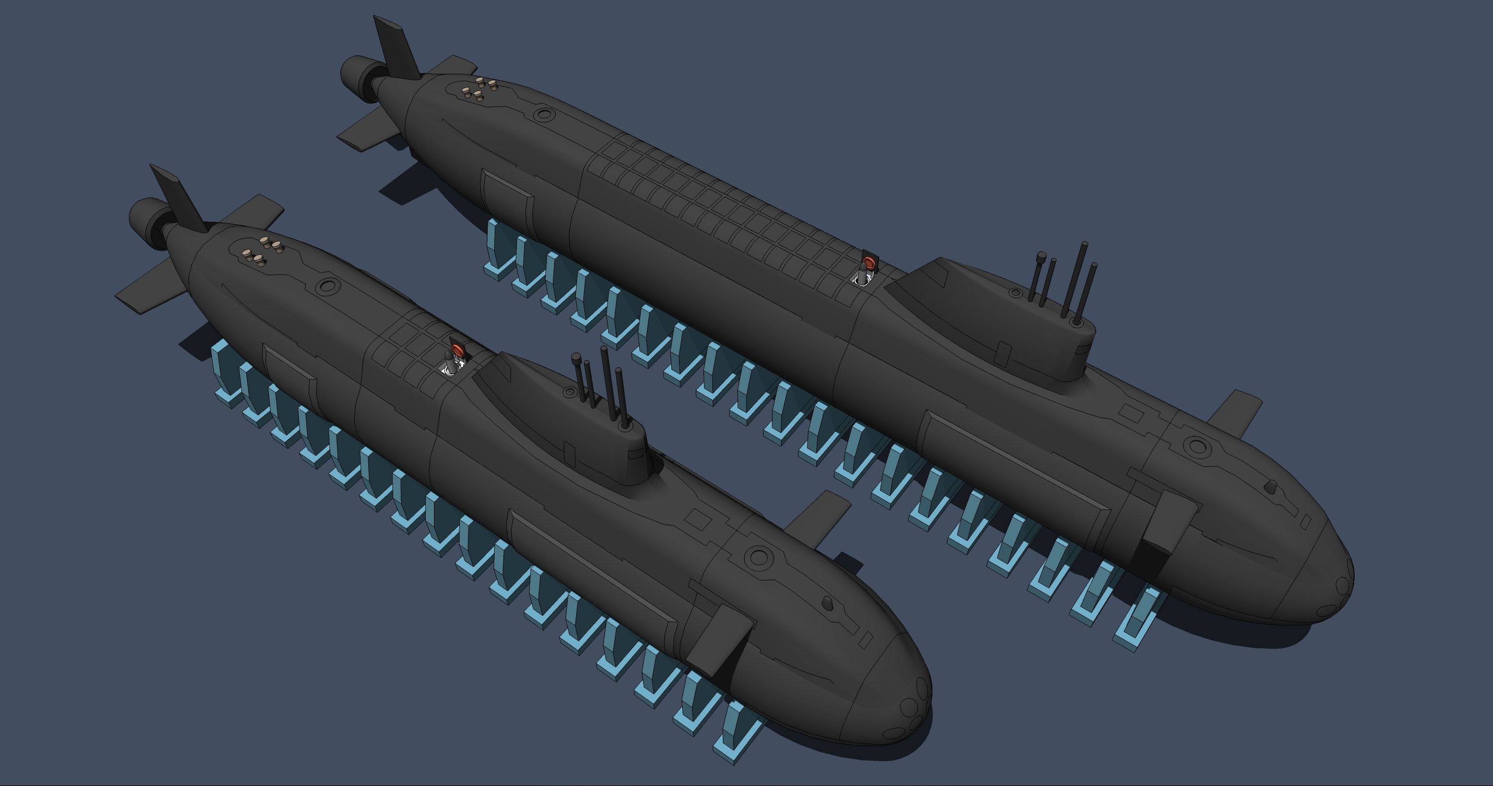 Fala-se numa nova classe de submarinos, que vão poder transformar-se em embarcações de ataque rápido à superfície, funcionando como hidroflutuadores. Embora se tornem vulneráveis, poderão sempre contar com apoio aéreo de porta-aviões para atingirem os seus alvos. Outros destes submarinos vão ter grandes dimensões e poderão transportar grandes arsenais, disparando uma grande quantidade de mísseis guiados de uma só vez.