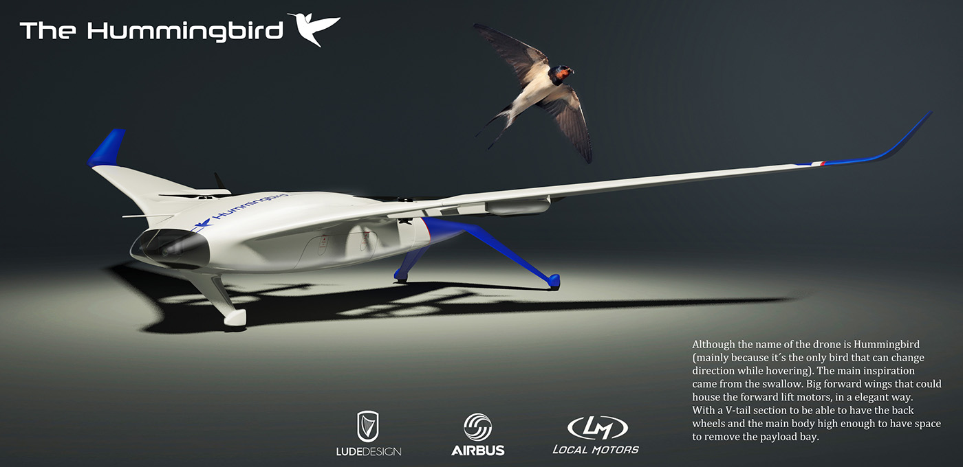 Embora o seu nome seja derivado do beija-flor, pela capacidade do drone de mudar de direção em pleno voo, André inspirou-se na andorinha para o design do Hummingbird, com asas longas para acomodar os dois motores principais do drone. Para manter o peso baixo, a estrutura seria construída em balsa reforçada com fibra de carbono, enquanto o nariz seria de policarbonato.