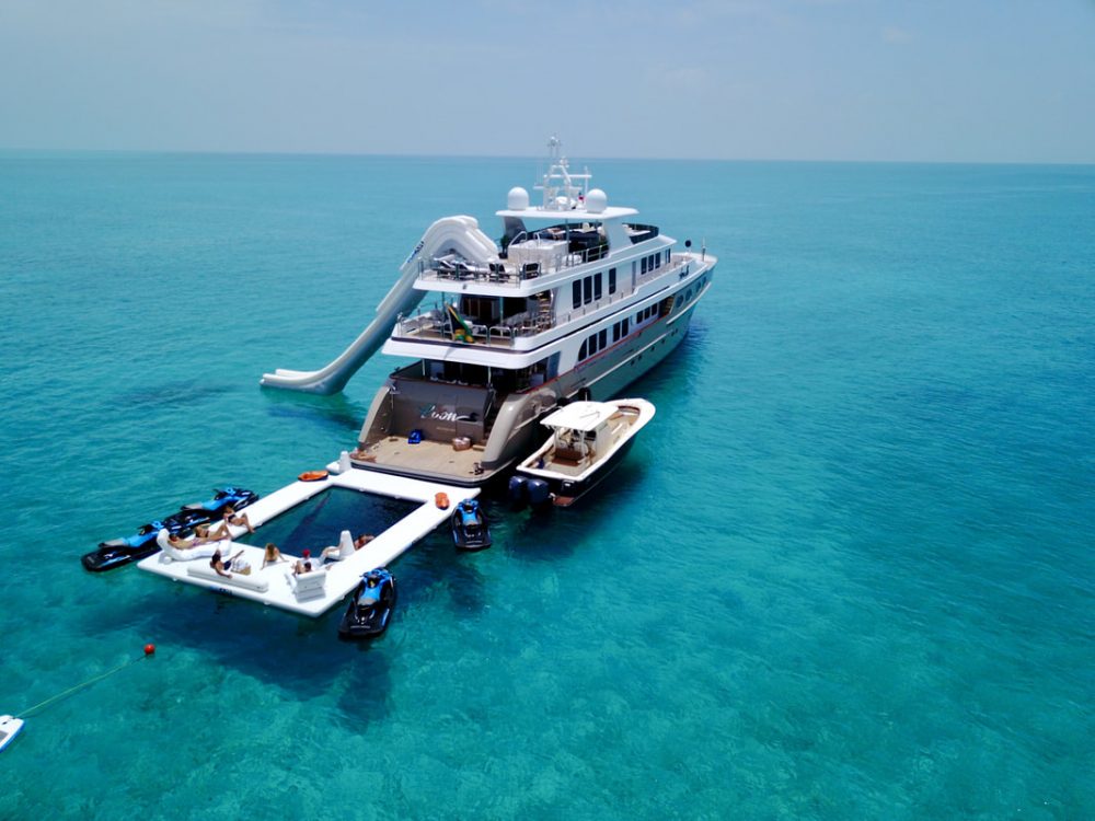 Tem quatro conveses, incluindo um completamente exterior com jacuzzi, a ponte com uma lounge, o principal com a sala de jantar e um salão, e o inferior com a maior parte das acomodações para os convidados. Mas o mais importante é conhecer os brinquedos que estão disponíveis para os 11 passageiros se divertirem. Provando que é um verdadeiro parque de diversões, o iate Loon tem um mini-iate Scout, quatro motos de água Seadoo, dois Seabobs para mergulho motorizado, um escorrega de oito metros, cinco pranchas de paddle, dois caiaques e 22 conjuntos de mergulho acompanhados de equipamento para caça submarina. Vai ser muito difícil alguém ficar entediado neste iate.