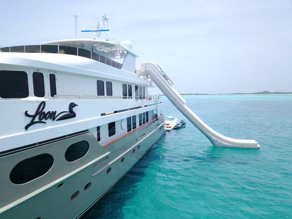 O Loon é um superiate Christensen de 47 metros, construído em 1997 e convertido em 2018. Os dois motores Deutz Diesel de 2200 cv permitem-lhe navegar confortavelmente a uma velocidade de cruzeiro de 16 nós (30 km/h). Costuma passar o verão nas Bahamas e o inverno nas Caraíbas, onde pode ser alugado por 148 mil dólares (130 mil euros) por semana… fora as despesas, que incluem a tripulação de nove pessoas. Mas como pode acomodar 11 pessoas em seis camarotes, dividido por todos acaba por ficar mais barato.