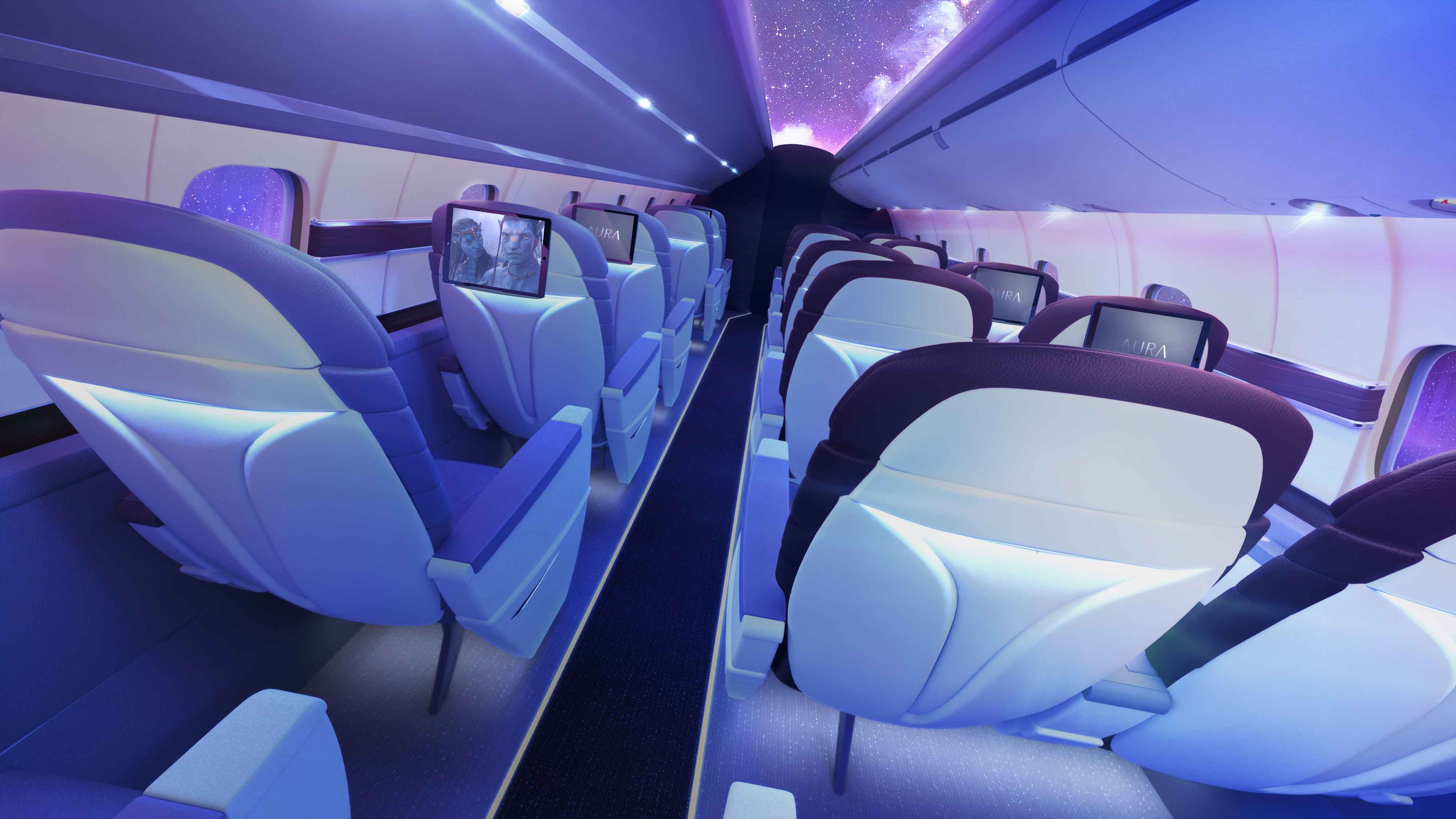 Os aviões da Aura vão ser jatos Bombardier CRJ700, com a capacidade reduzida de 75 para 29 passageiros, para oferecer uma experiência mais confortável e luxuoso a todos os clientes. O passageiro pode escolher entre a experiência First e Wave, a primeira a mais luxuosa, com bancos mais largos, tratamento privado no aeroporto, menu com tapas de fusão e sushi bar, Wifi de alta velocidade e um iPad ligado a um visor de realidade virtual.