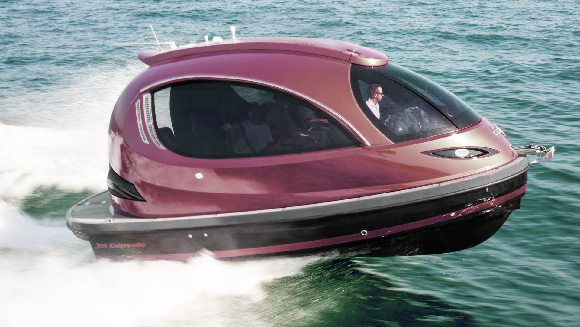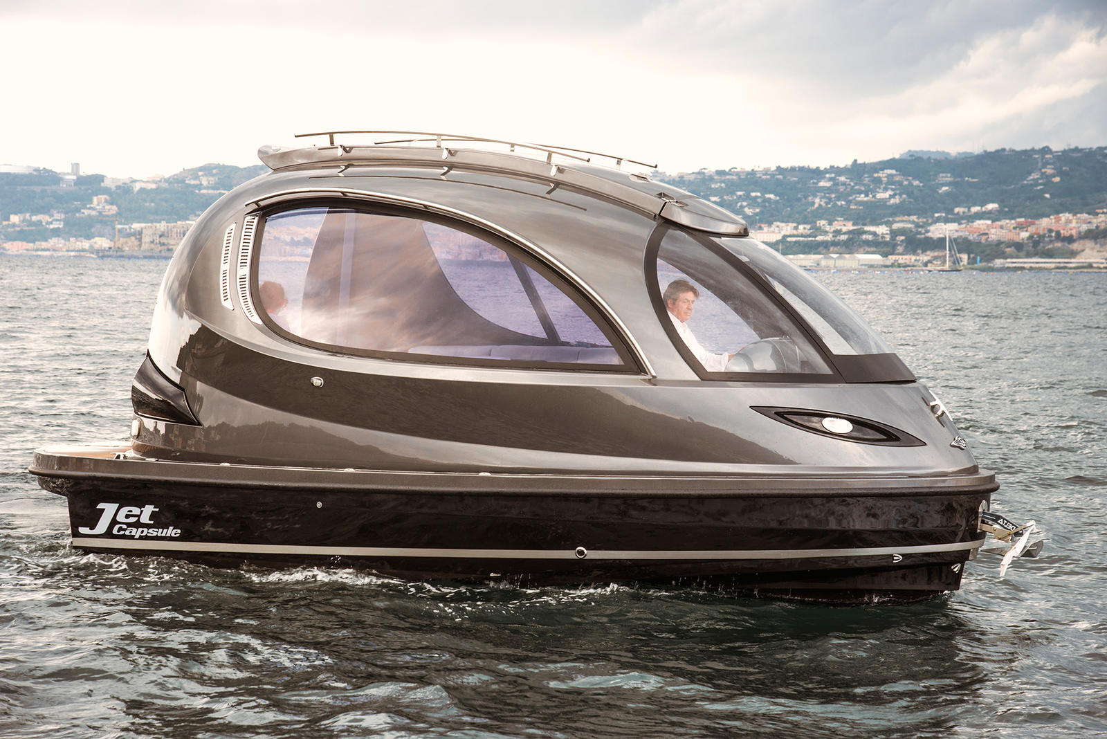 Construída em Nápoles, a Jet Capsule tem um comprimento semelhante ao de uma embarcação de recreio, mas foi construída de modo a oferecer o conforto de um iate num pequeno pacote. Para isso, tem uma cabine protegida dos elementos, que pode ser personalizada de acordo com as necessidades do proprietários, incluindo sofás para um passeio com amigos e família, uma mesa de trabalho, um máximo de 12 bancos para serviço de táxi, ou mesmo nada, para transporte de carga. O interior tem altura suficiente para uma pessoa com 1,80 metros.