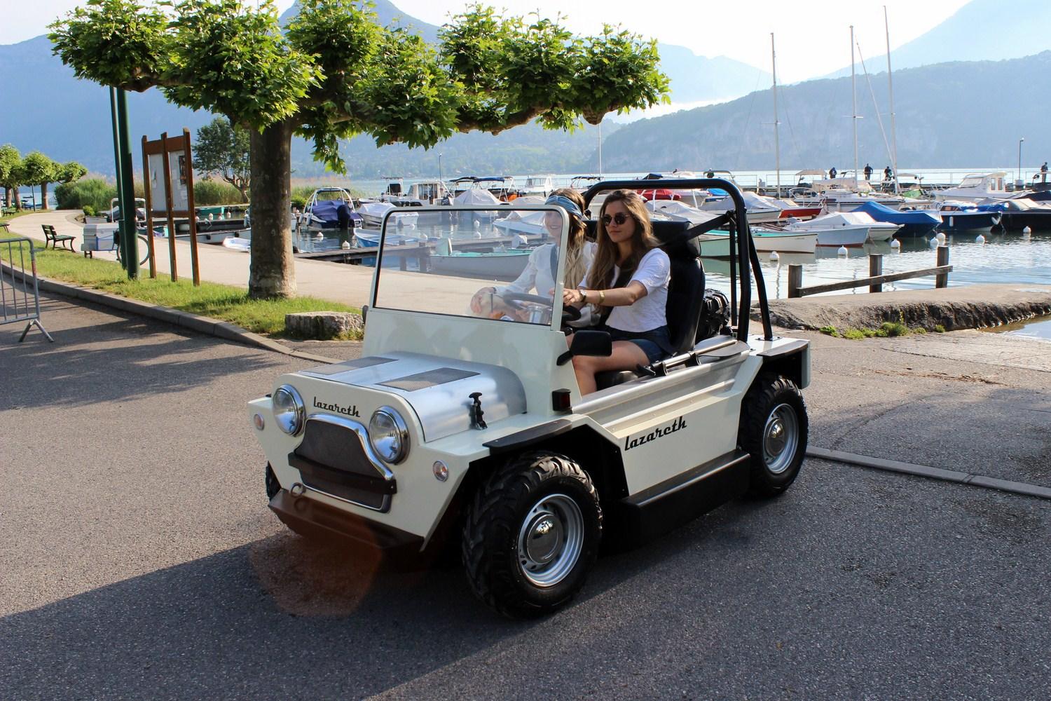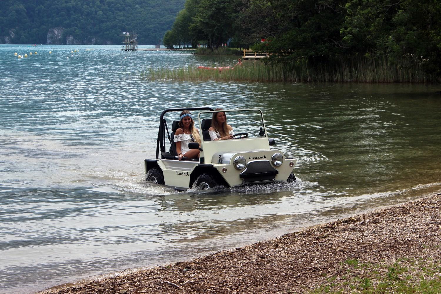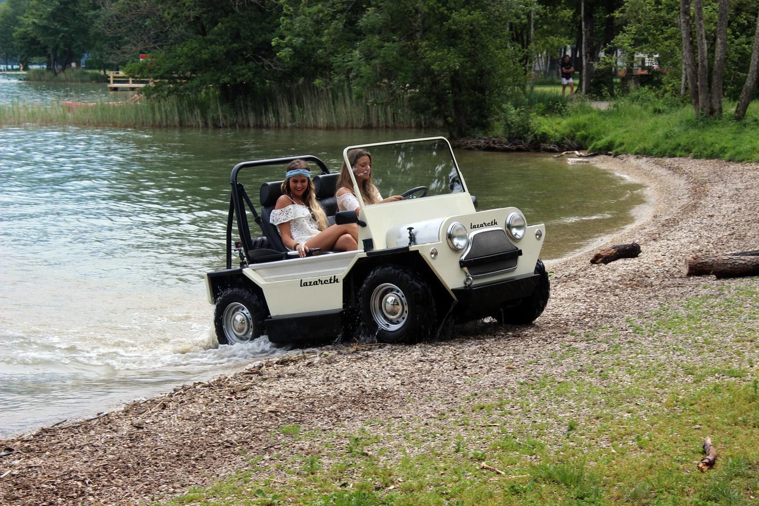 Em França, a Lazareth achou que essa era uma falha que devia ser corrigida. Com um chassis mais pequeno e carroçaria em alumínio, o Mini Moke anfíbio tem apenas 2,30 metros de comprimento e espaço para apenas duas pessoas, enquanto o motor de 400 cm3 tem apenas 19 cv, mas está ligado às quatro rodas. Em estrada, atinge 90 km/h e só necessita de carta de quadriciclos.