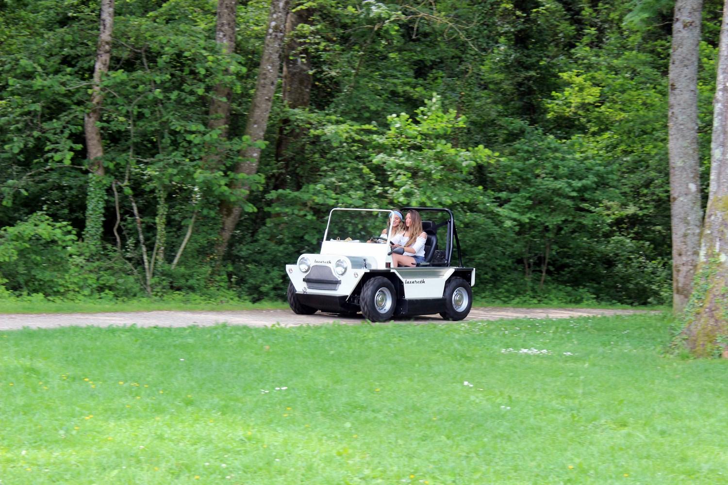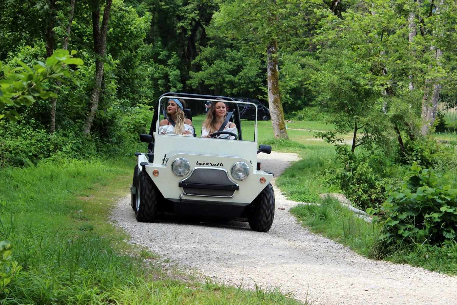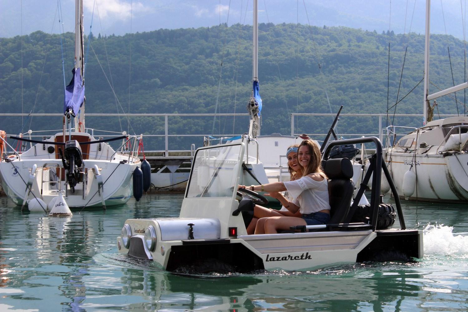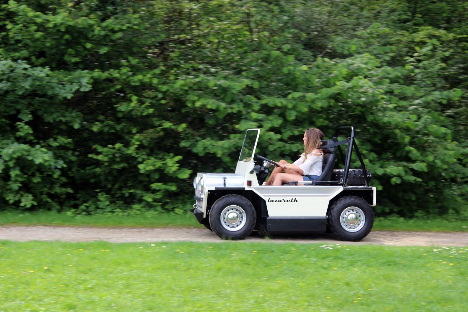 Em França, a Lazareth achou que essa era uma falha que devia ser corrigida. Com um chassis mais pequeno e carroçaria em alumínio, o Mini Moke anfíbio tem apenas 2,30 metros de comprimento e espaço para apenas duas pessoas, enquanto o motor de 400 cm3 tem apenas 19 cv, mas está ligado às quatro rodas. Em estrada, atinge 90 km/h e só necessita de carta de quadriciclos.