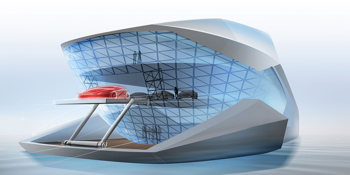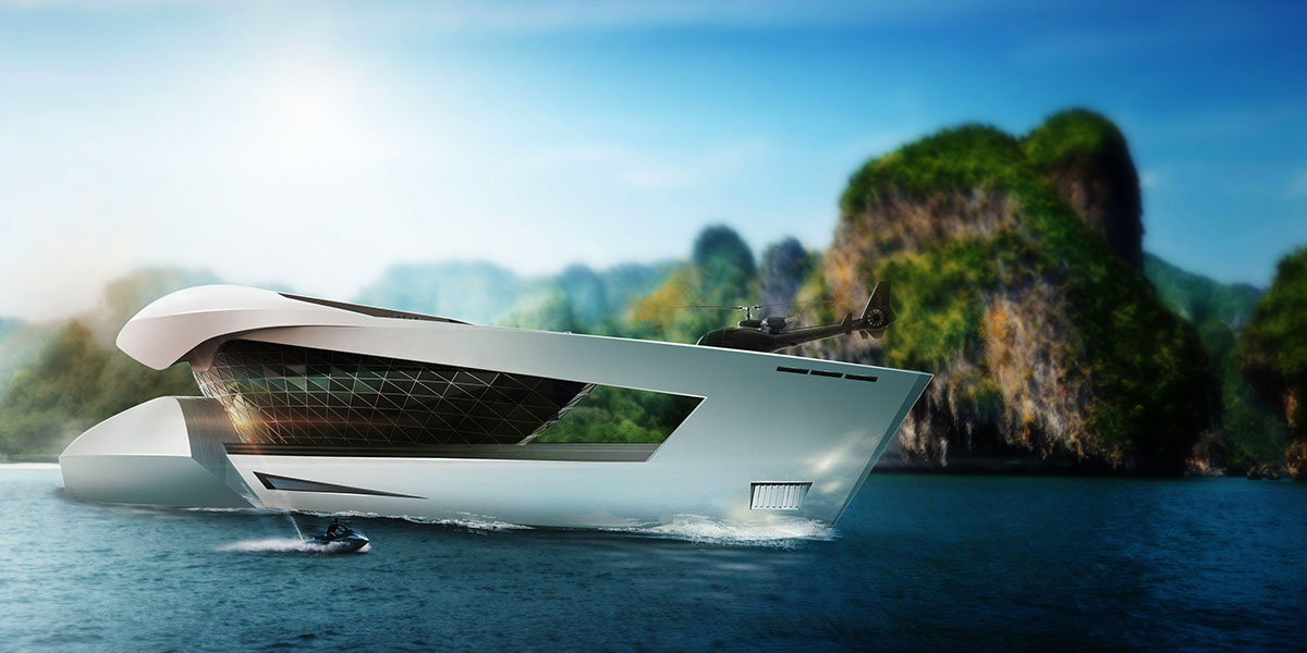 O CF8 Future Concept é a visão da Sea Level para o iate do futuro. Tem nada menos que 80 metros de comprimento, quatro andares acima da linha de água e um abaixo. Para suportar essa estrutura, tem quatro pilares. A área de habitação é rodeada por vidro, de modo a que os ocupantes dos oito camarotes tenham uma vista permanente do horizonte, a qualquer altura do dia.