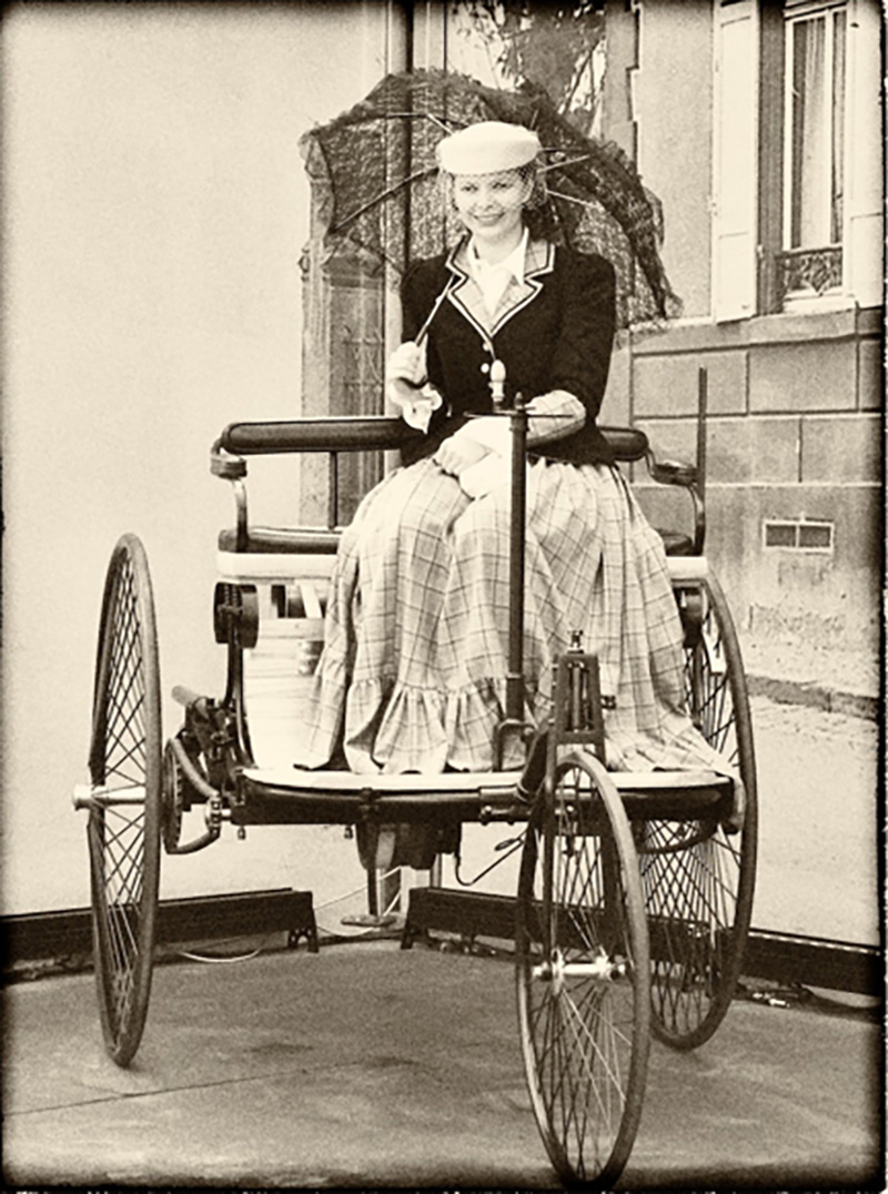 Em 1888, pegou nos dois filhos e partiu de Mannheim onde a família vivia com destino a Pforzheim, onde tinha nascido. Foi um percurso de 106 km por autênticas “picadas” de terra batida com pedras e buracos e onde apenas se podiam encontrar alguns cavaleiros e carruagens.