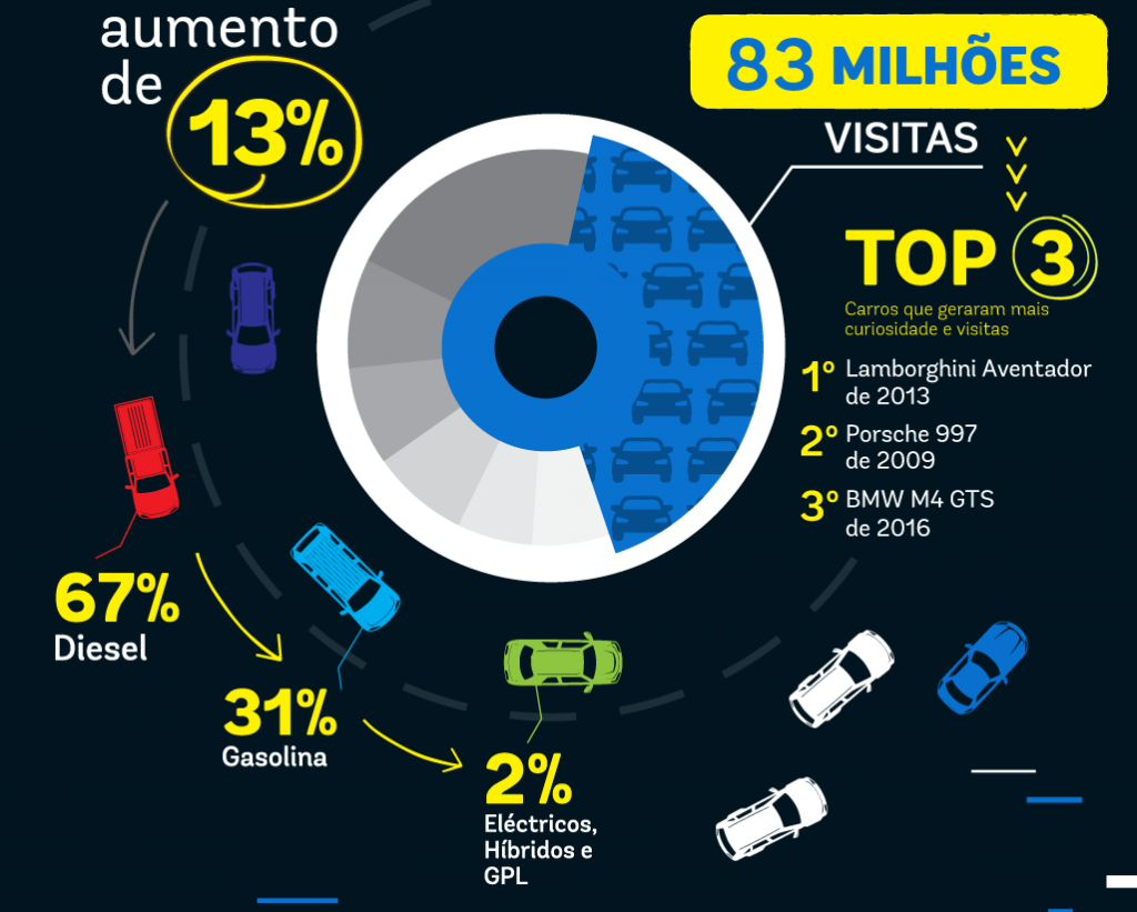 Um Lamborghini Aventador de 2013, um Porsche 911 (997) de 2009 e um BMW M4 GTS de 2016 foram, respetivamente, os carros que geraram mais interesse no portal, tendo gerado mais curiosidade e visitas.
