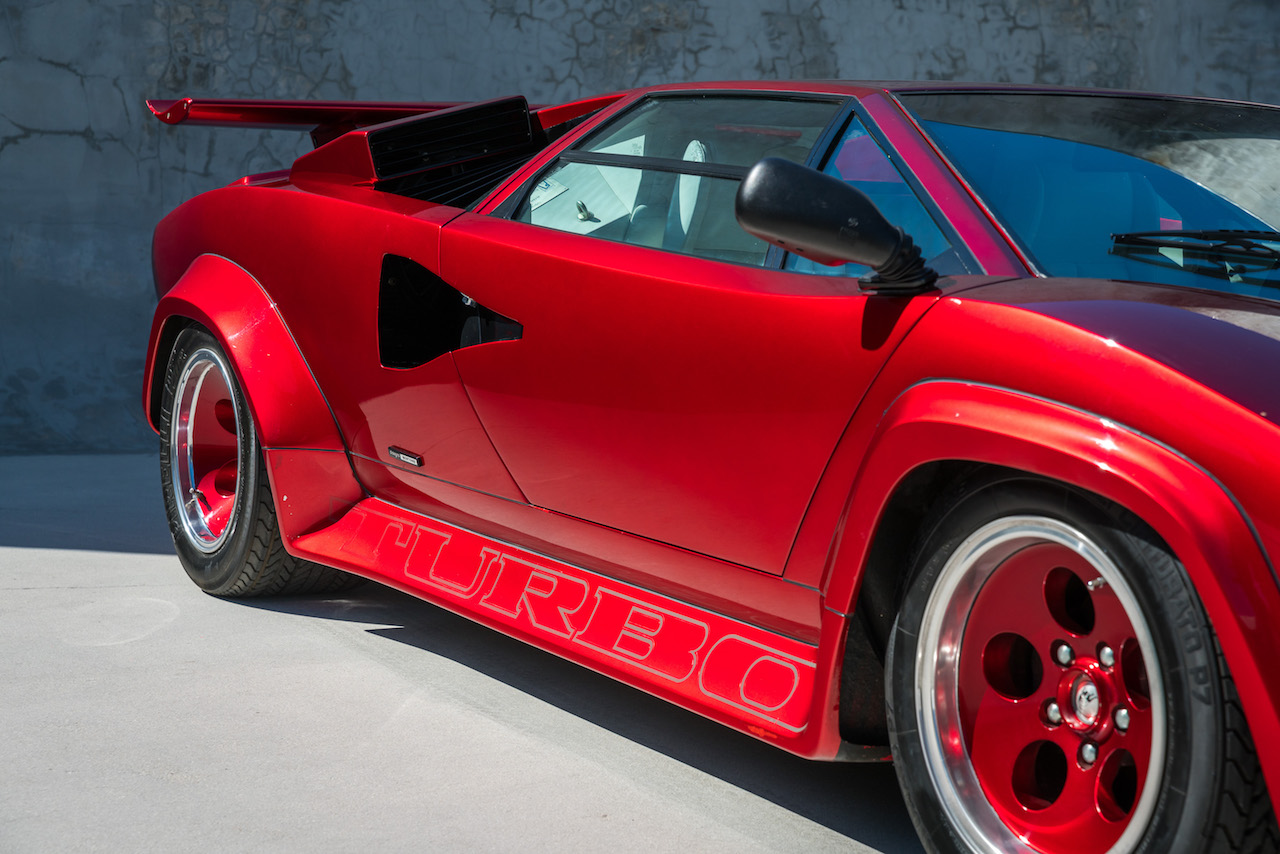 O Lamborghini Countach já é um dos automóveis mais espetaculares construídos durante os anos 80. E dois exemplares do carro italiano são ainda mais espetaculares, pois foram modificados e transformados no raríssimo Countach Twin Turbo. Como resultado, o motor 4.8 V12 saltou dos 375 para os 746 cv, podendo atingir os 335 km/h de velocidade máxima. Para controlar um nível de potência que na altura era considerado impossível para um carro de estrada, a pressão dos turbos podia ser ajustada pelo condutor.