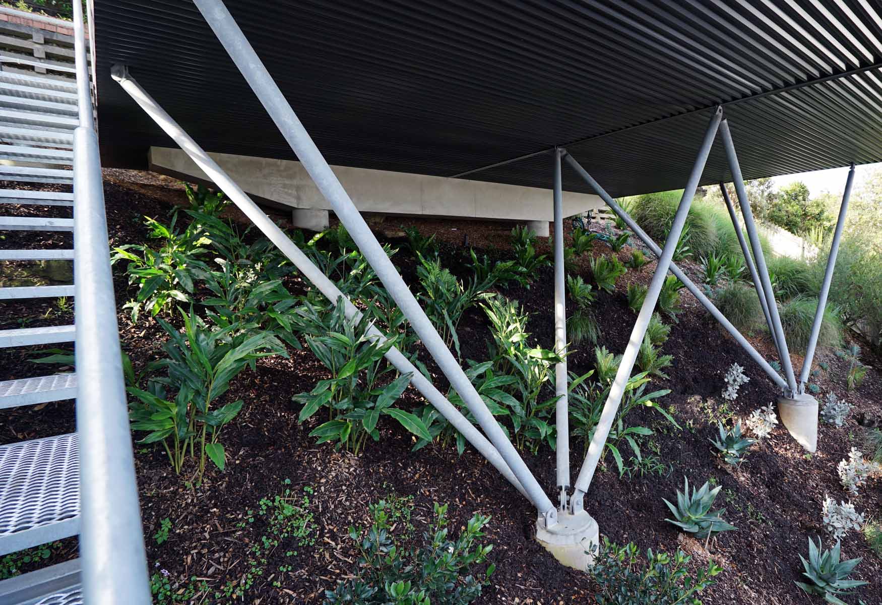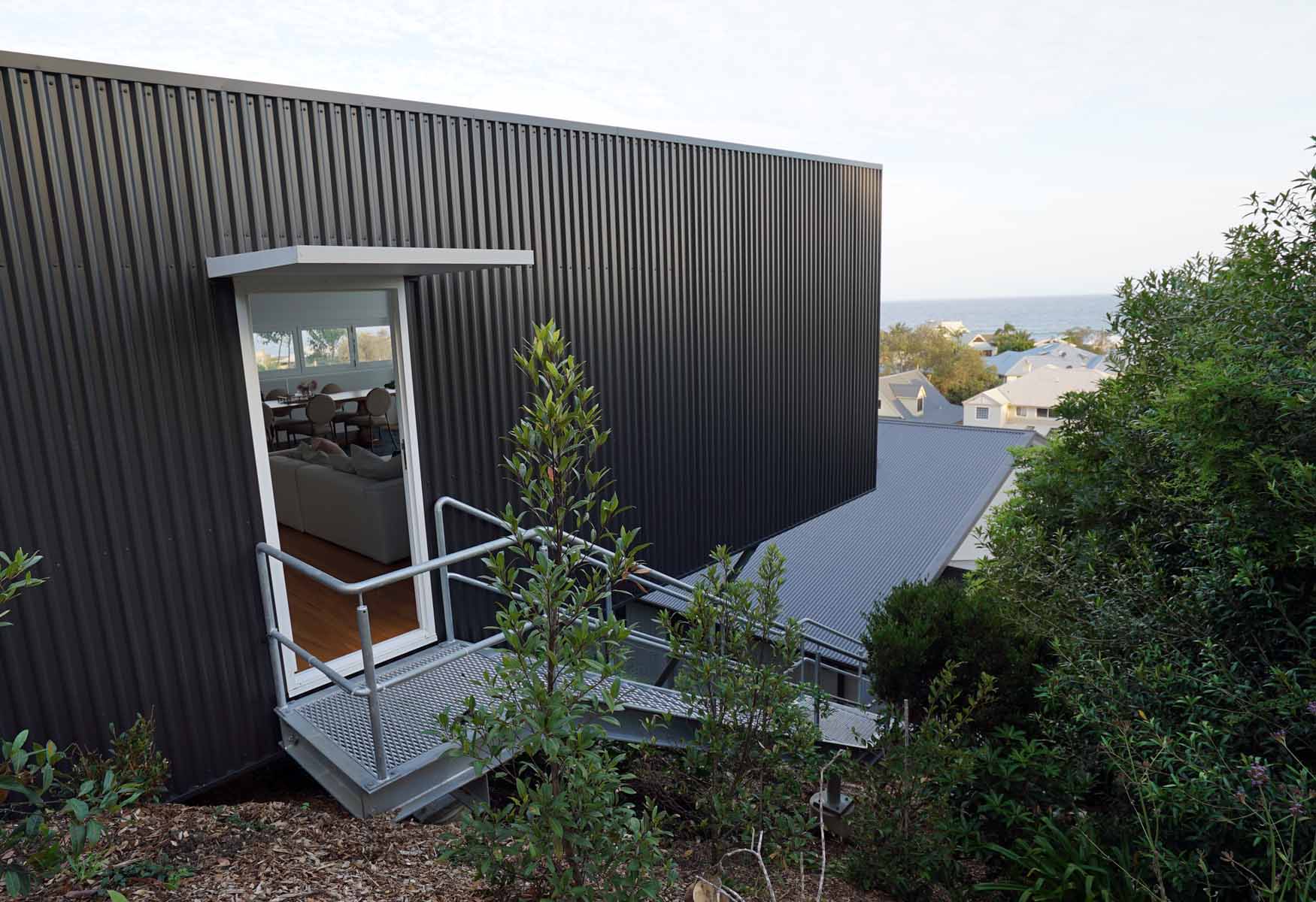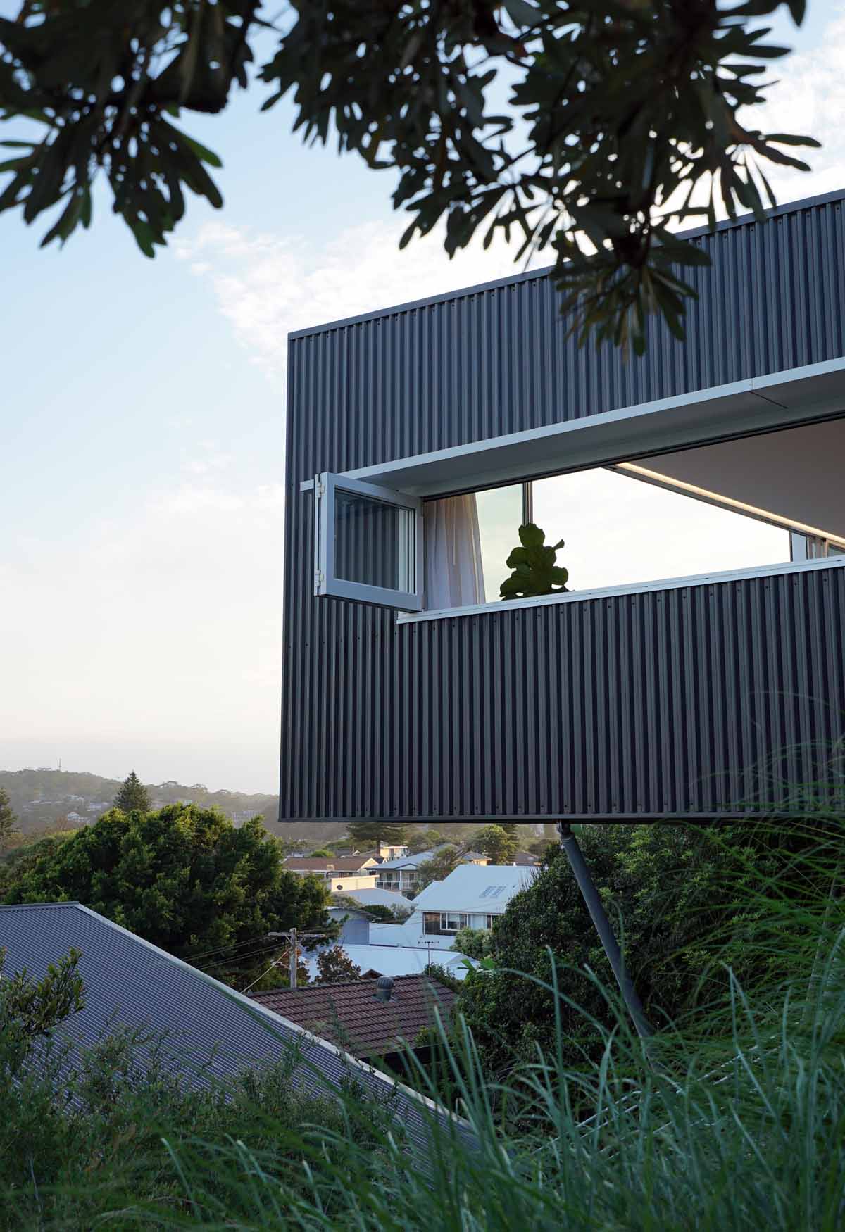Este estúdio foi construído na zona de North Avoca, perto de Sydney, na Austrália, e é um trabalho do arquiteto Mark Thitchner. O mais difícil foi conceber uma estrutura que permitisse à casa ficar a “flutuar” junto à montanha sem que a sua segurança estivesse em causa, pelo que muito tempo foi despendido a criar a estrutura de apoio. O acesso também é complicado, pois foi necessário pré-fabricá-la, e depois de feita só se pode lá chegar por uma escadaria metálica. Além disso, os seus proprietários precisaram de a elevar com uma grua, pois era impossível transportar os materiais de construção para o local.