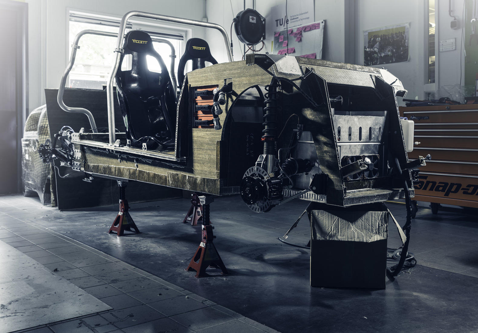 As únicas peças da carroçaria e do chassis que não são biodegradáveis são a suspensão e as jantes, que, como é natural, são feitas de metal. As baterias são convencionais, de iões de lítio, com os dois motores elétricos a gerarem uma potência combinada de apenas 8 kW (11 cv), o que acaba por ser suficiente para o peso do carro e para as quatro pessoas no interior.