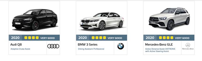 Nos ensaios aos modelos, três dos carros no segmento premium, os Mercedes-Benz GLE, o BMW Série 3 e o Audi Q8, receberam nota ‘Muito Bom’, obtendo boas classificações em todos os aspetos, quer na manutenção do condutor atento e integrado na condução, quer na atuação caso o condutor falhe a sua intervenção.