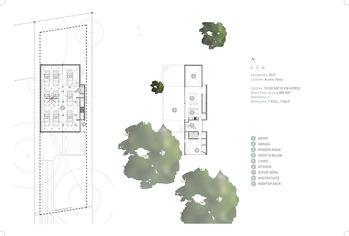 A empresa Matt Fajkus Architecture, sediada em Austin, projectou uma residência de dois andares com garagem e um espaço no piso térreo para exibir a colecção de automóveis do proprietário.