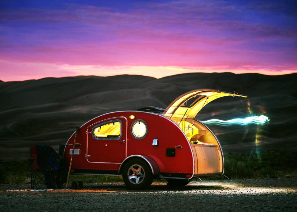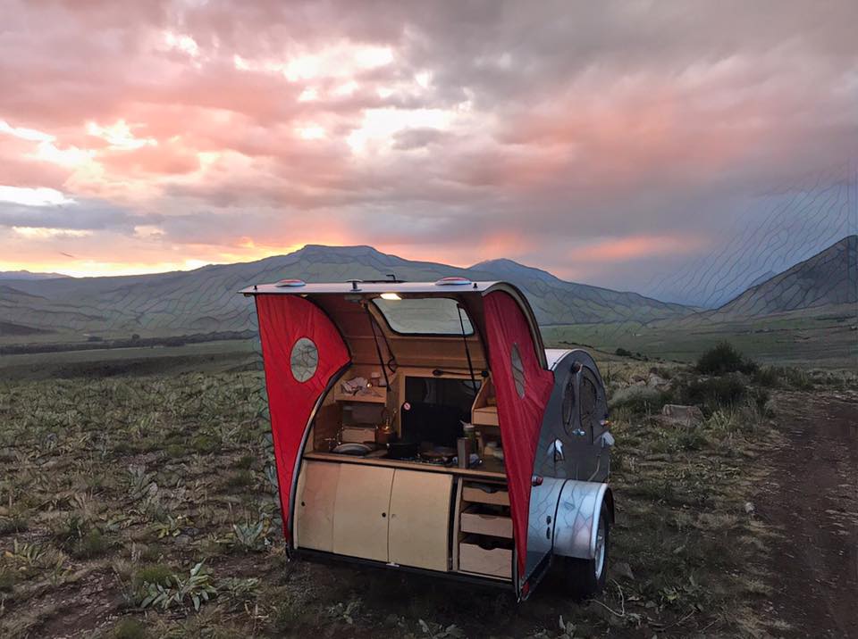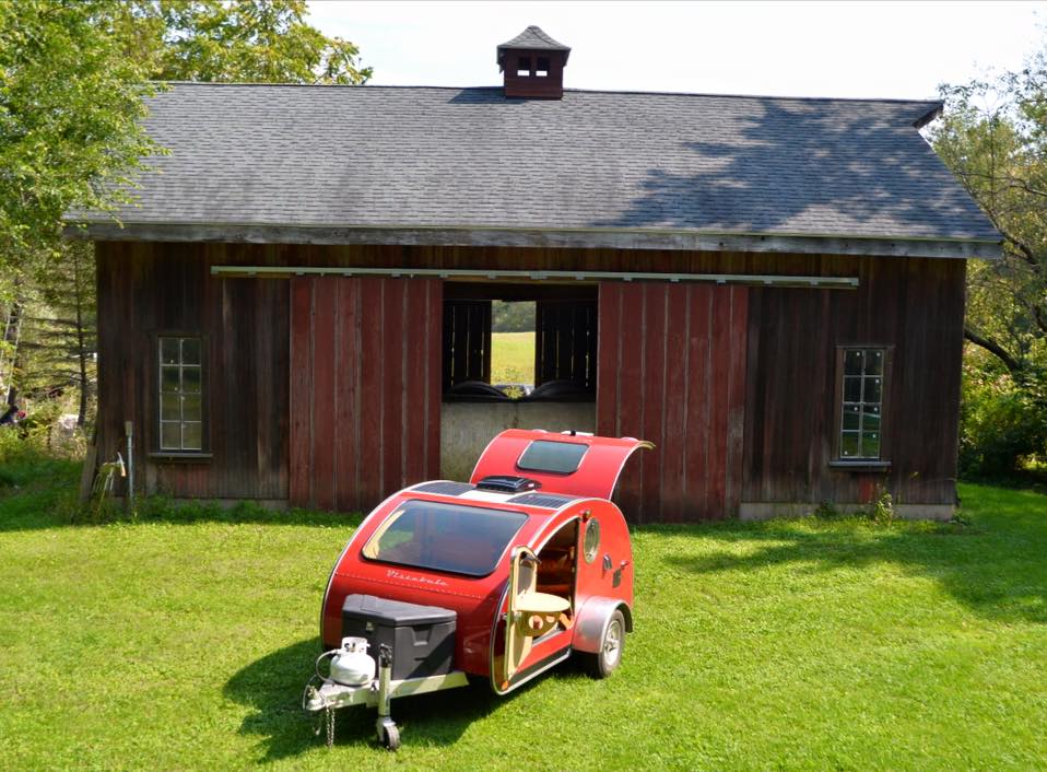 Estas caravanas em forma de lágrima parecem pequenas mas são até bastante espaçosas. O espaço para a cozinha é no exterior, com tudo arrumado de forma compacta na traseira. O interior é ocupado por uma ampla sala de estar com espaço para uma mesa, e que pode ser convertido para uma cama de casal. Quanto aos painéis solares, geram energia suficiente para manter um frigorífico a trabalhar por dois dias, carregar um smartphone ou dar algumas horas de energia a um computador portátil.